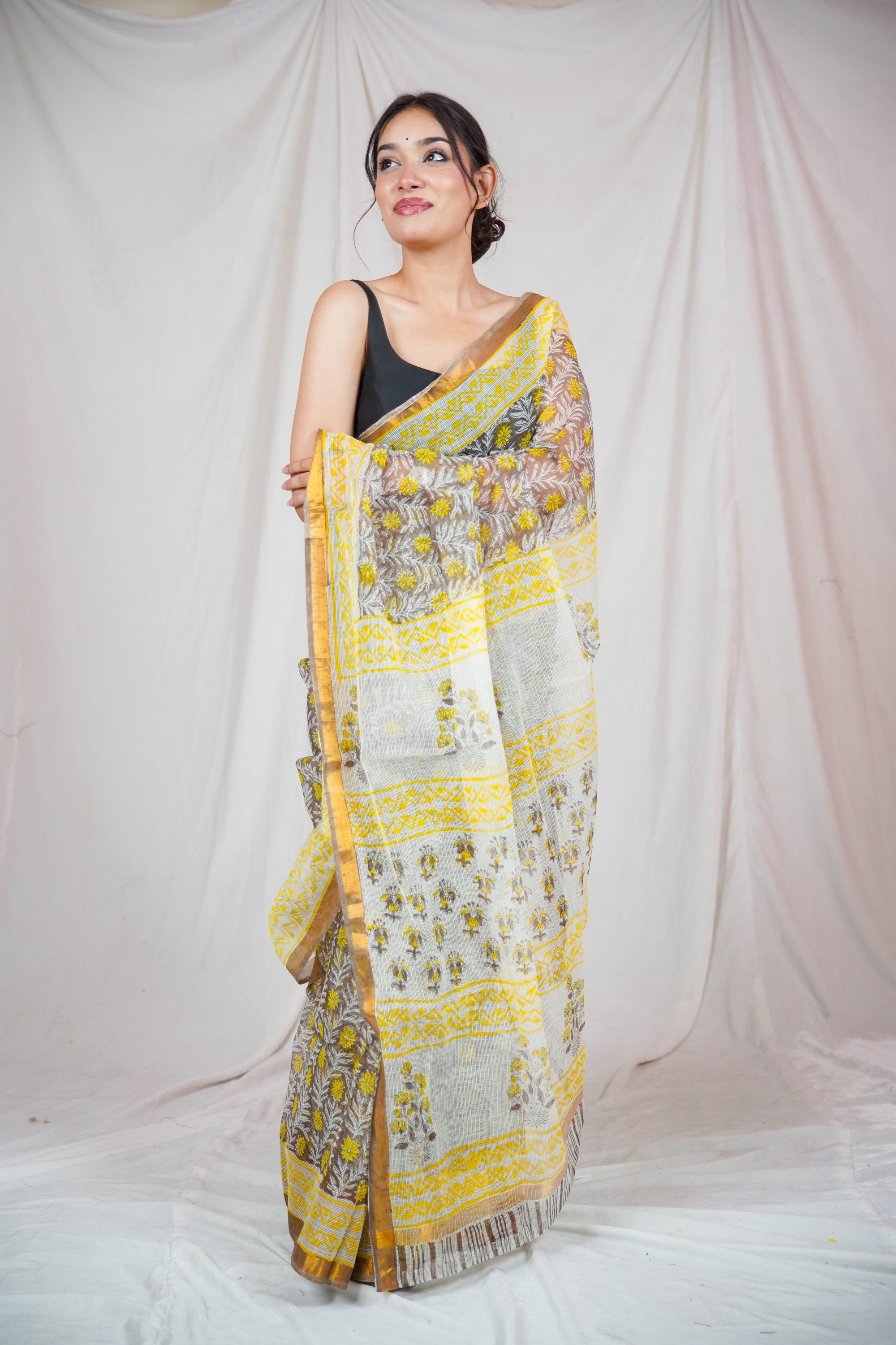 We recommend gentle hand washing or dry cleaning for linen sarees to maintain their quality and longevity.