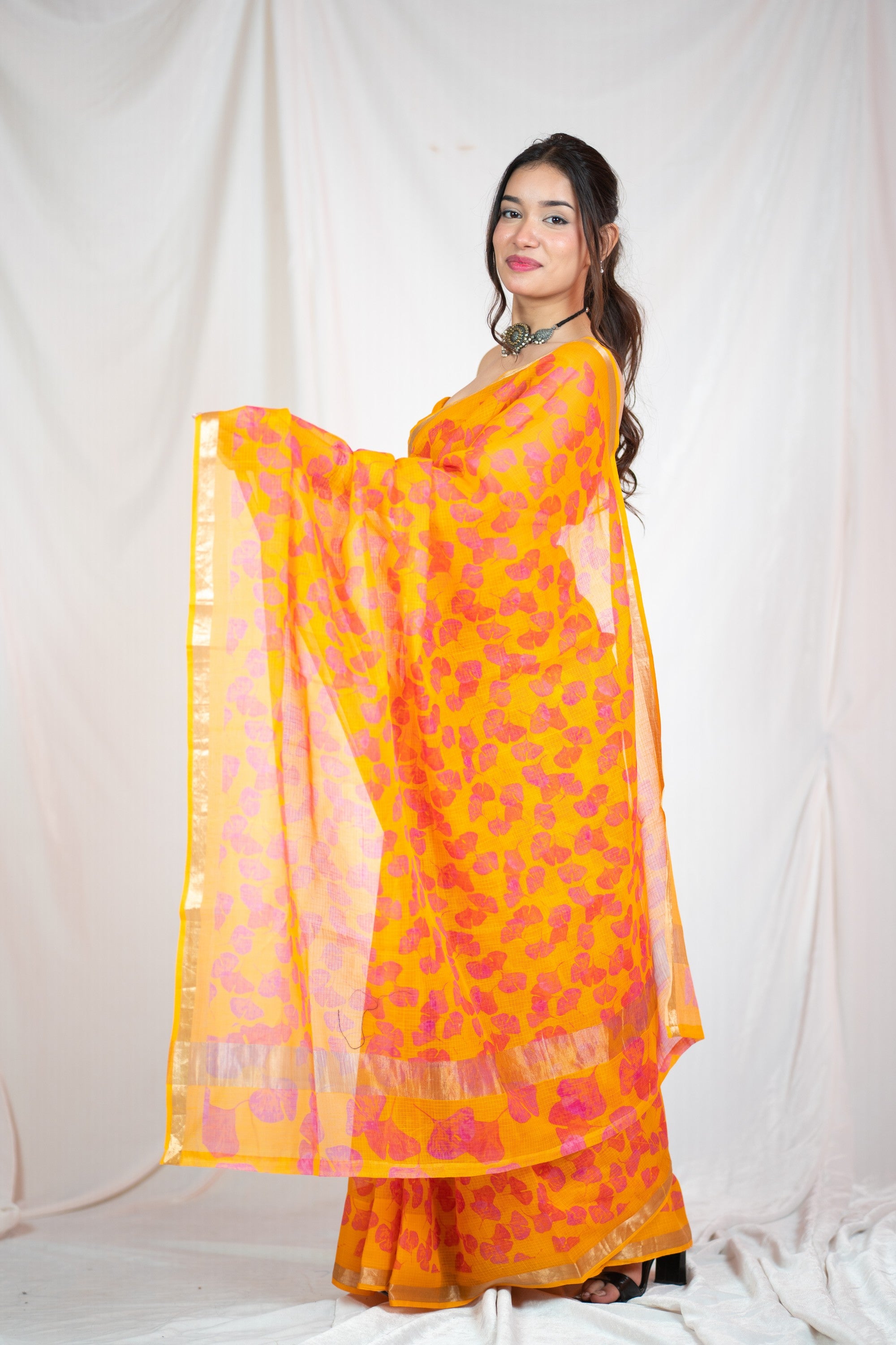 We recommend gentle hand washing or dry cleaning for linen sarees to maintain their quality and longevity.