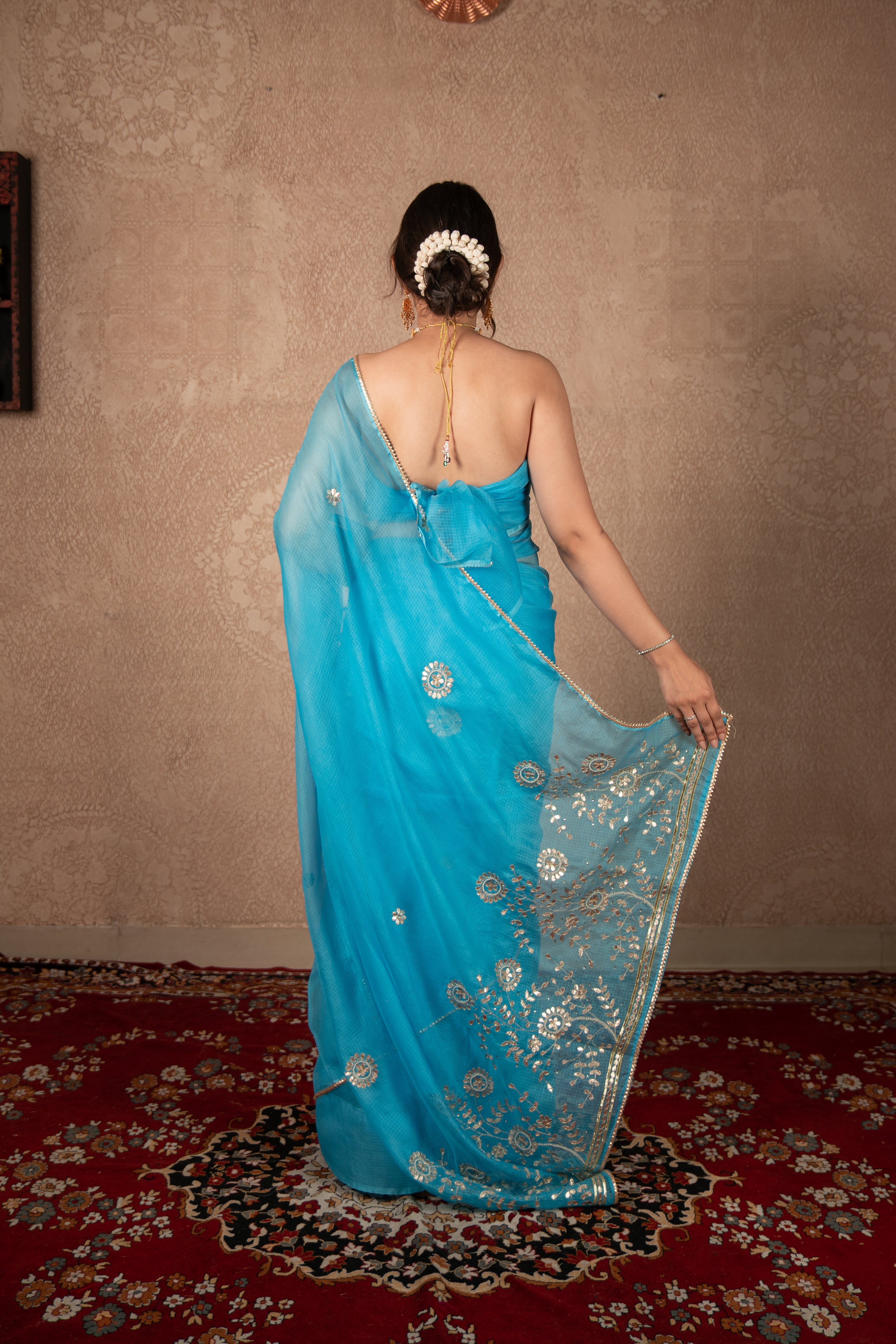 Work: Exquisite gota jaal embroidery on the pallu
