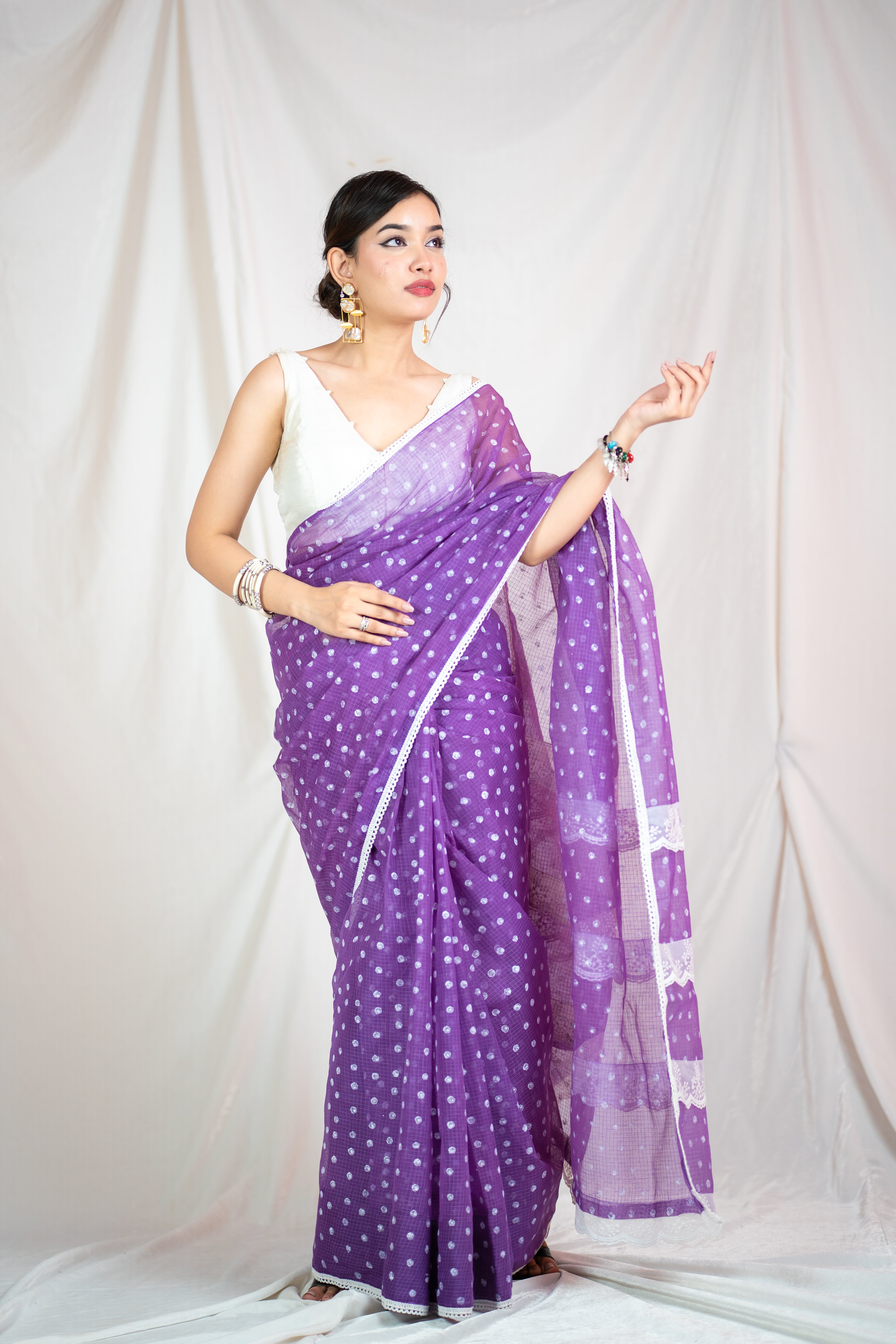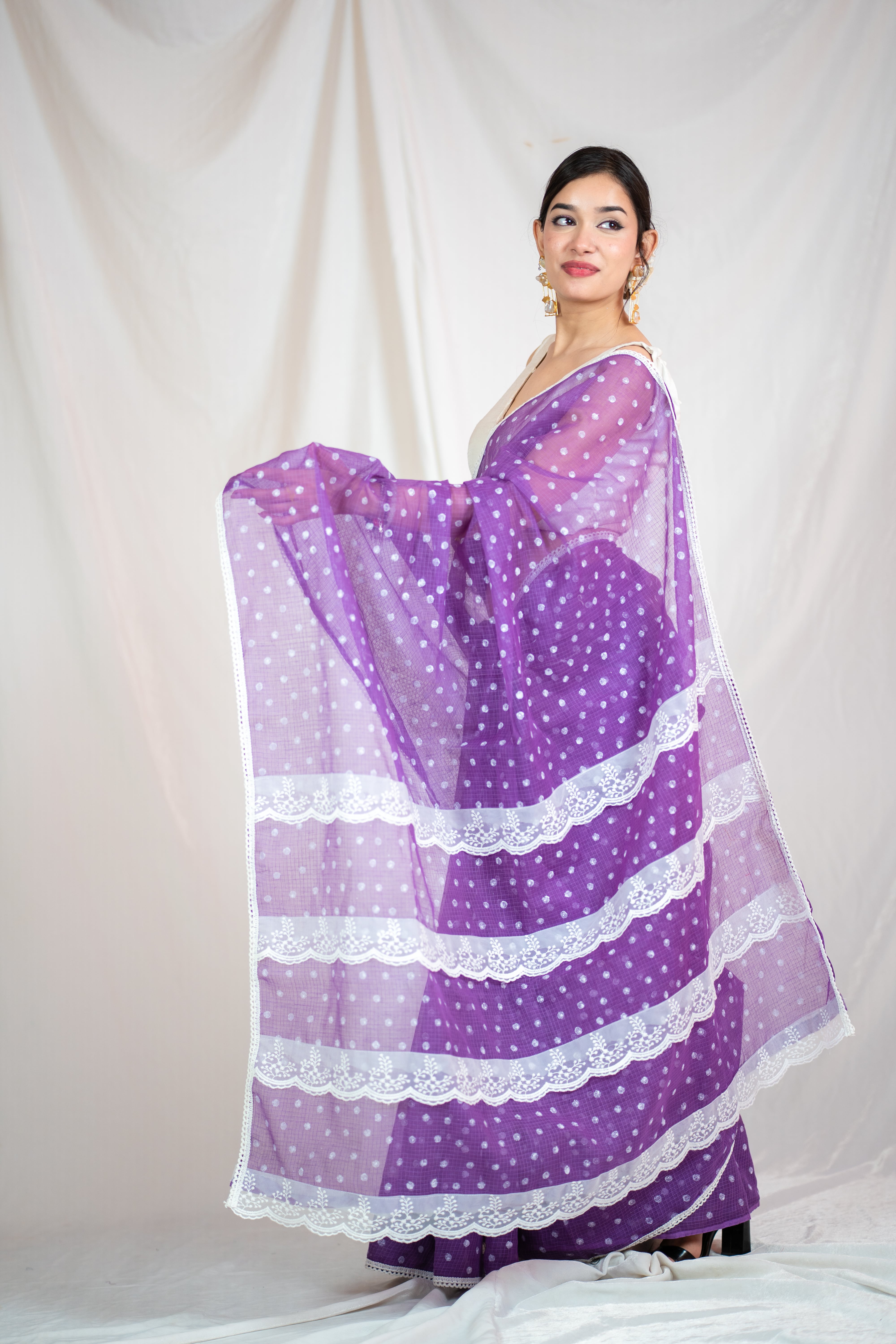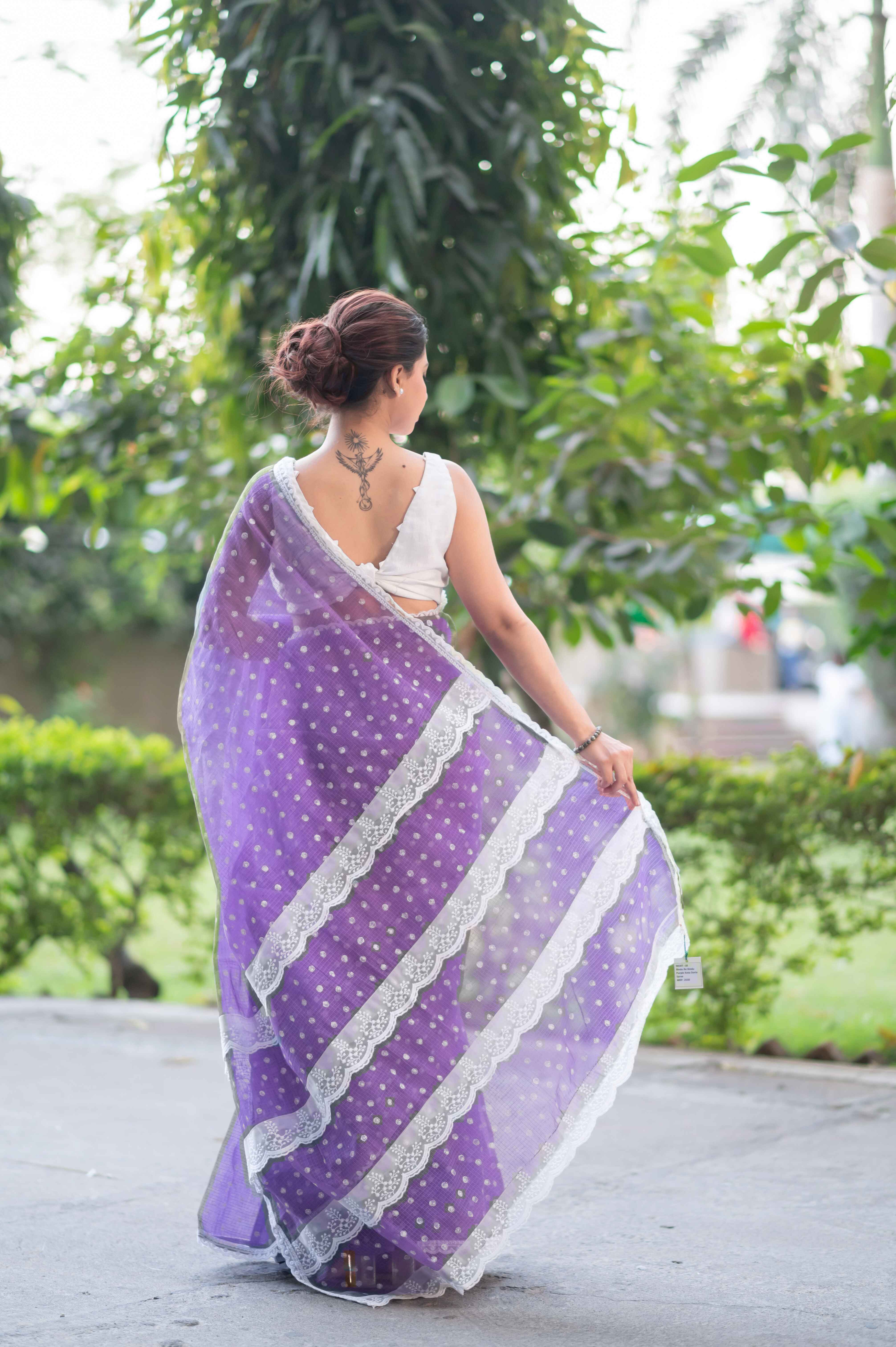Kota Doria is a traditional fabric from Rajasthan, known for its lightweight and translucent qualities, making it ideal for sarees.