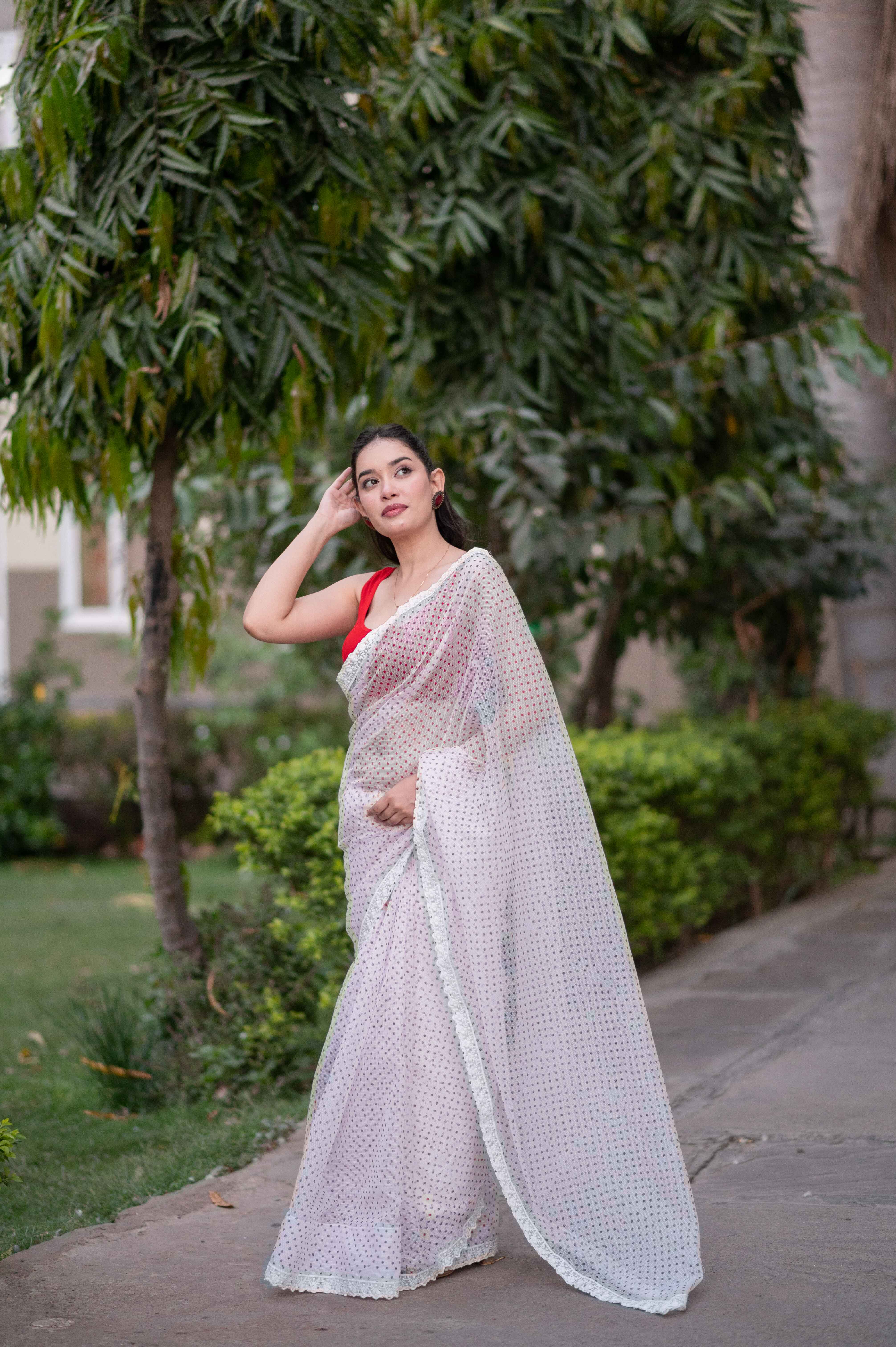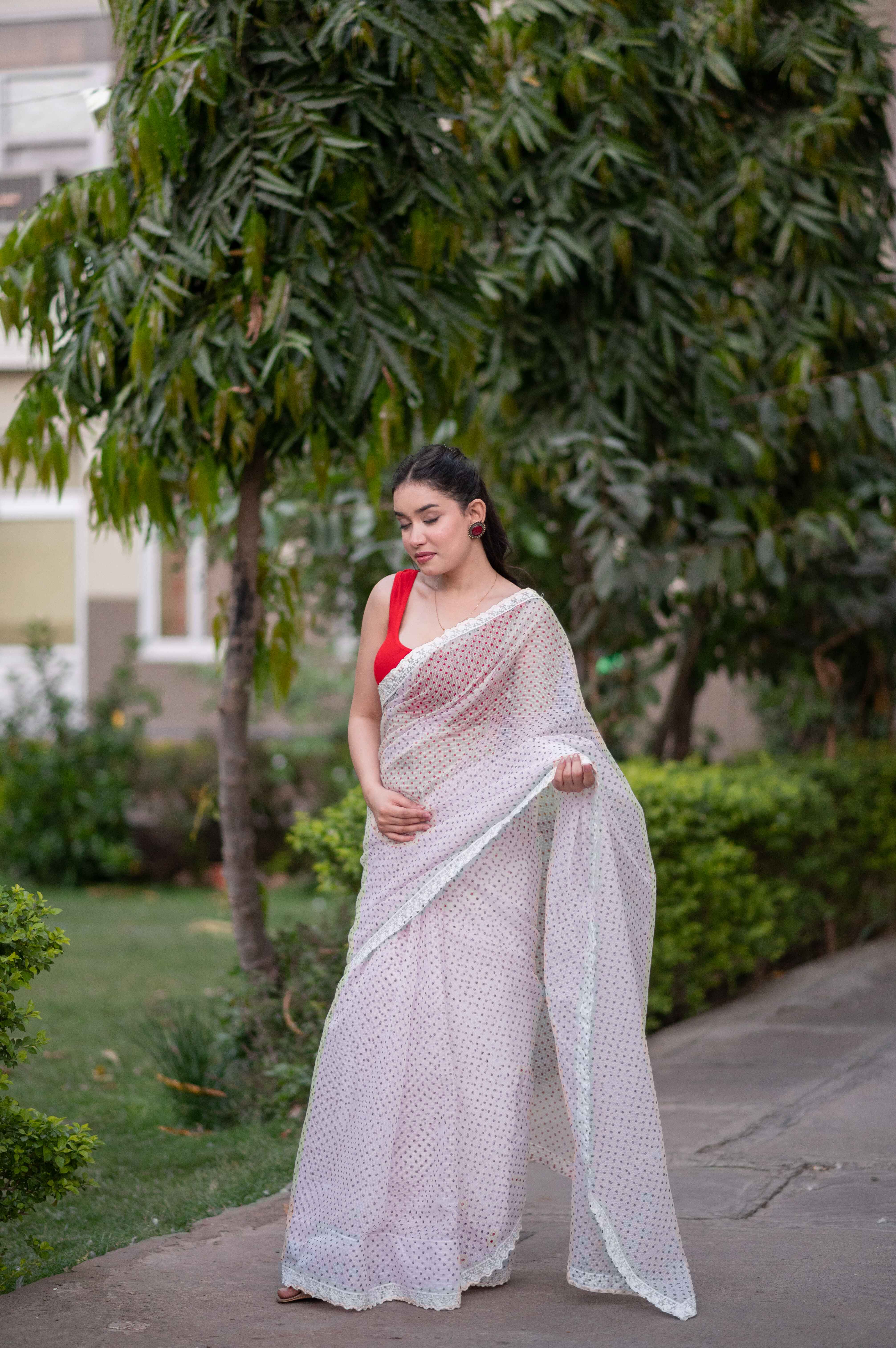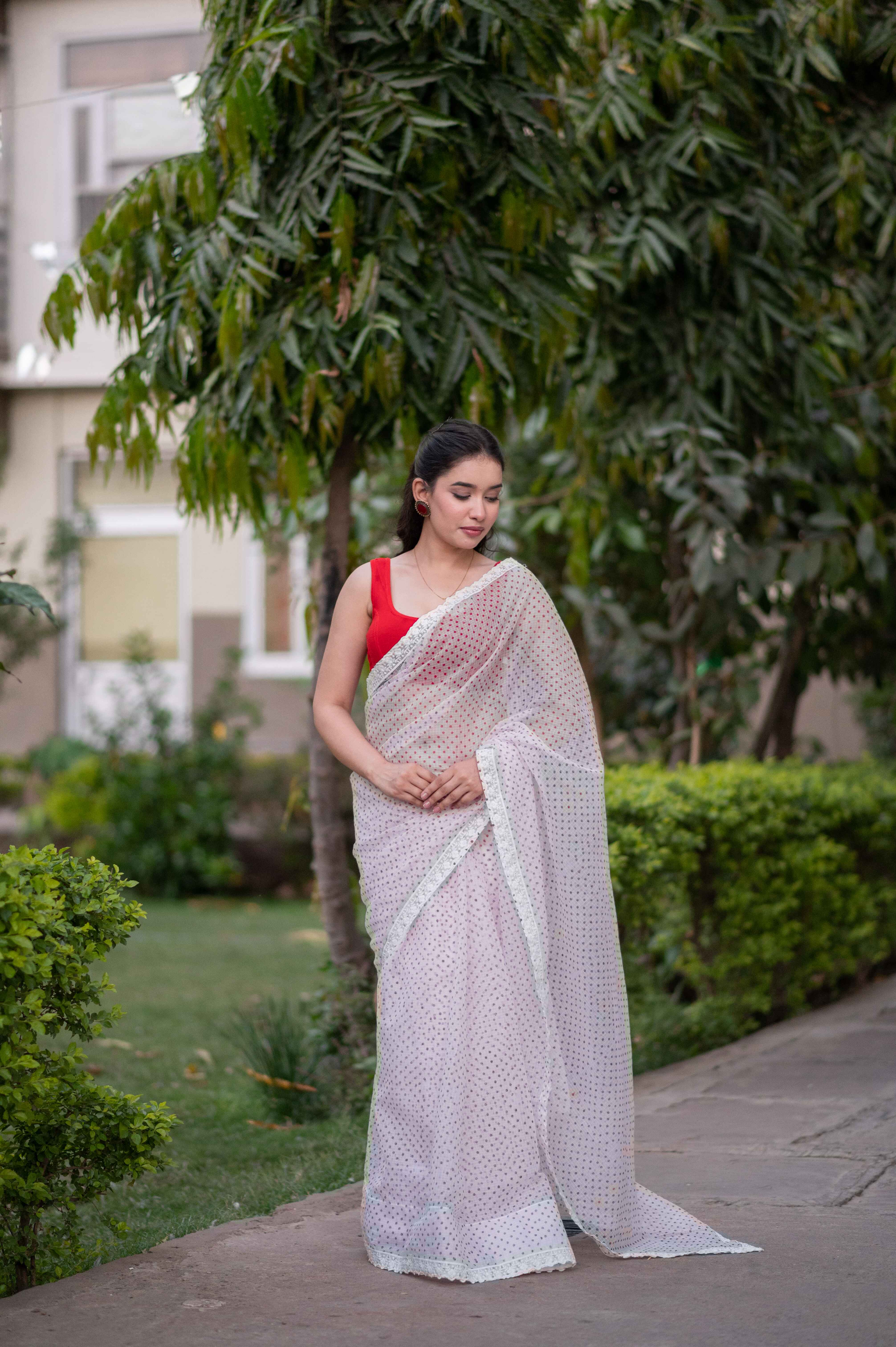 Experience the timeless elegance of Blush - White Kota Doria Saree – a statement of grace and sophistication. Shop now & embrace effortless charm!