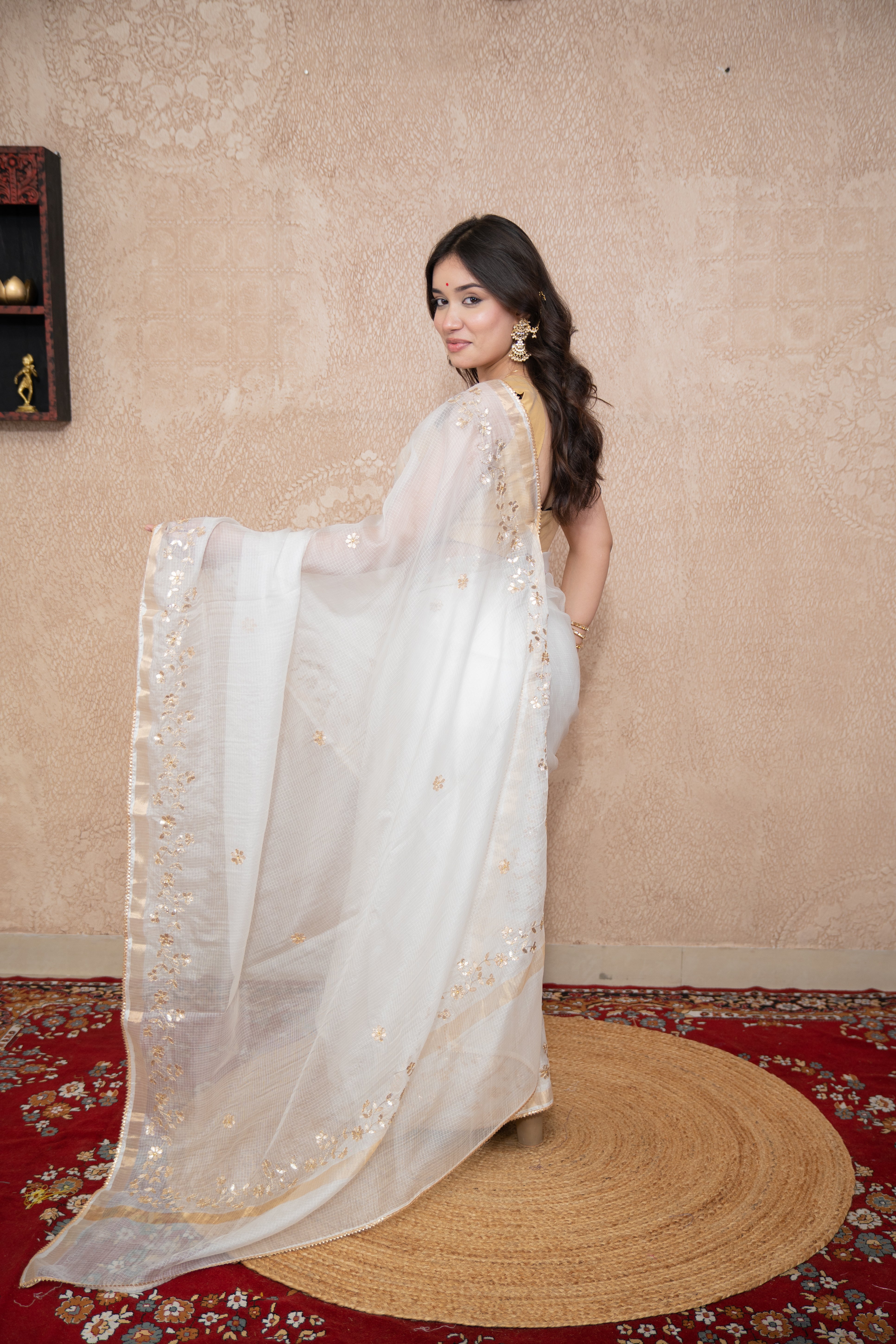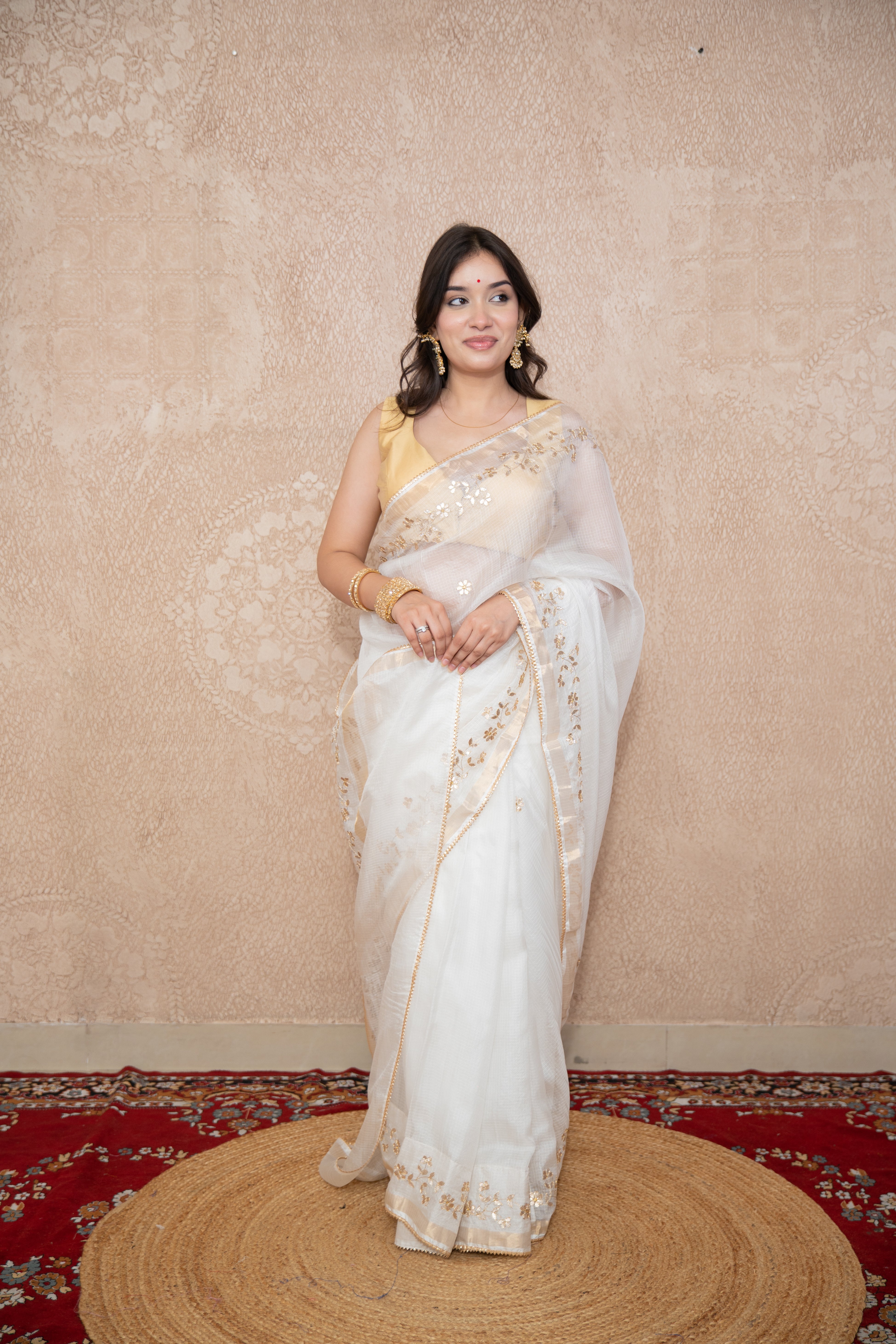 Kota Doria is a traditional fabric from Rajasthan, known for its lightweight and translucent qualities, making it ideal for sarees.