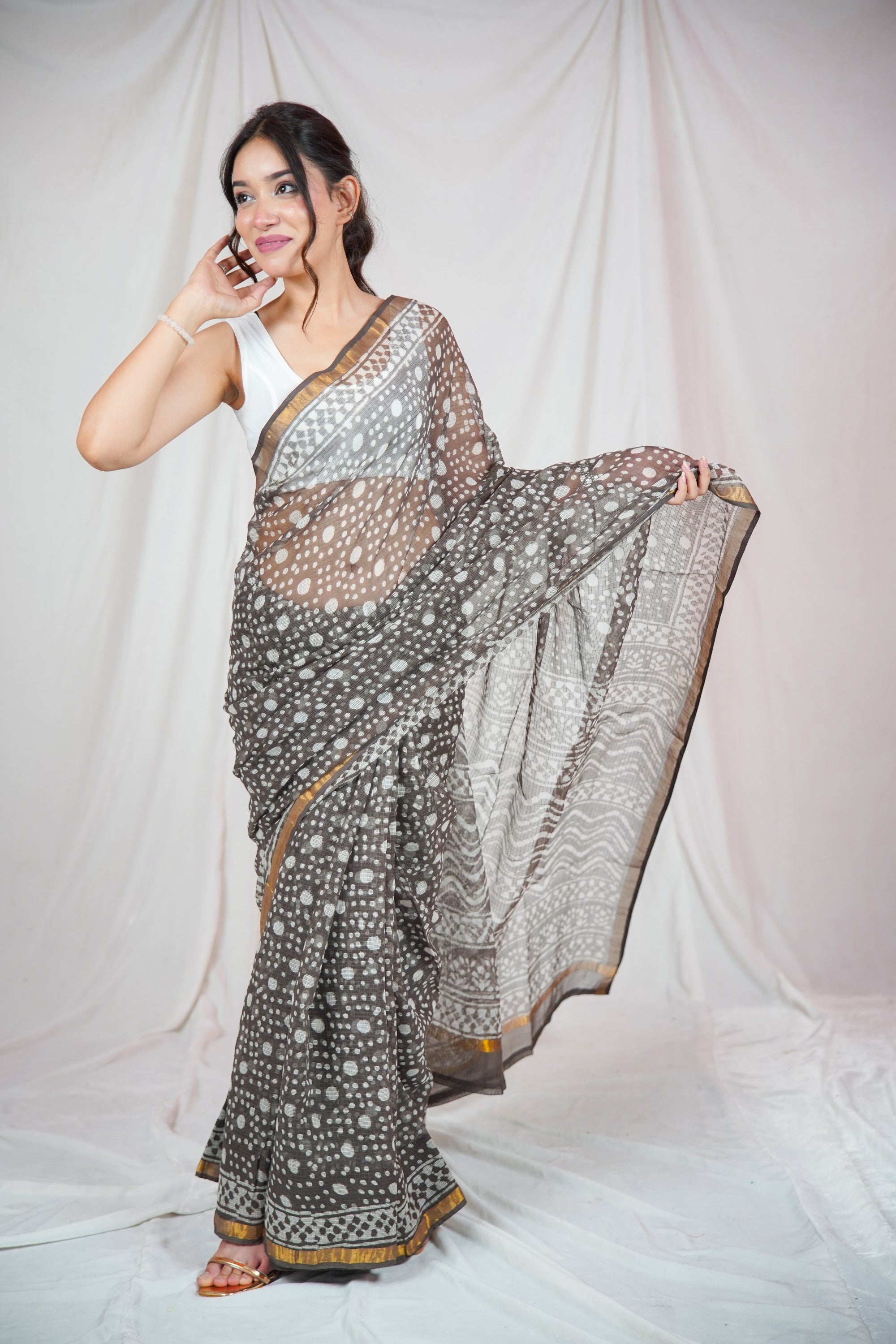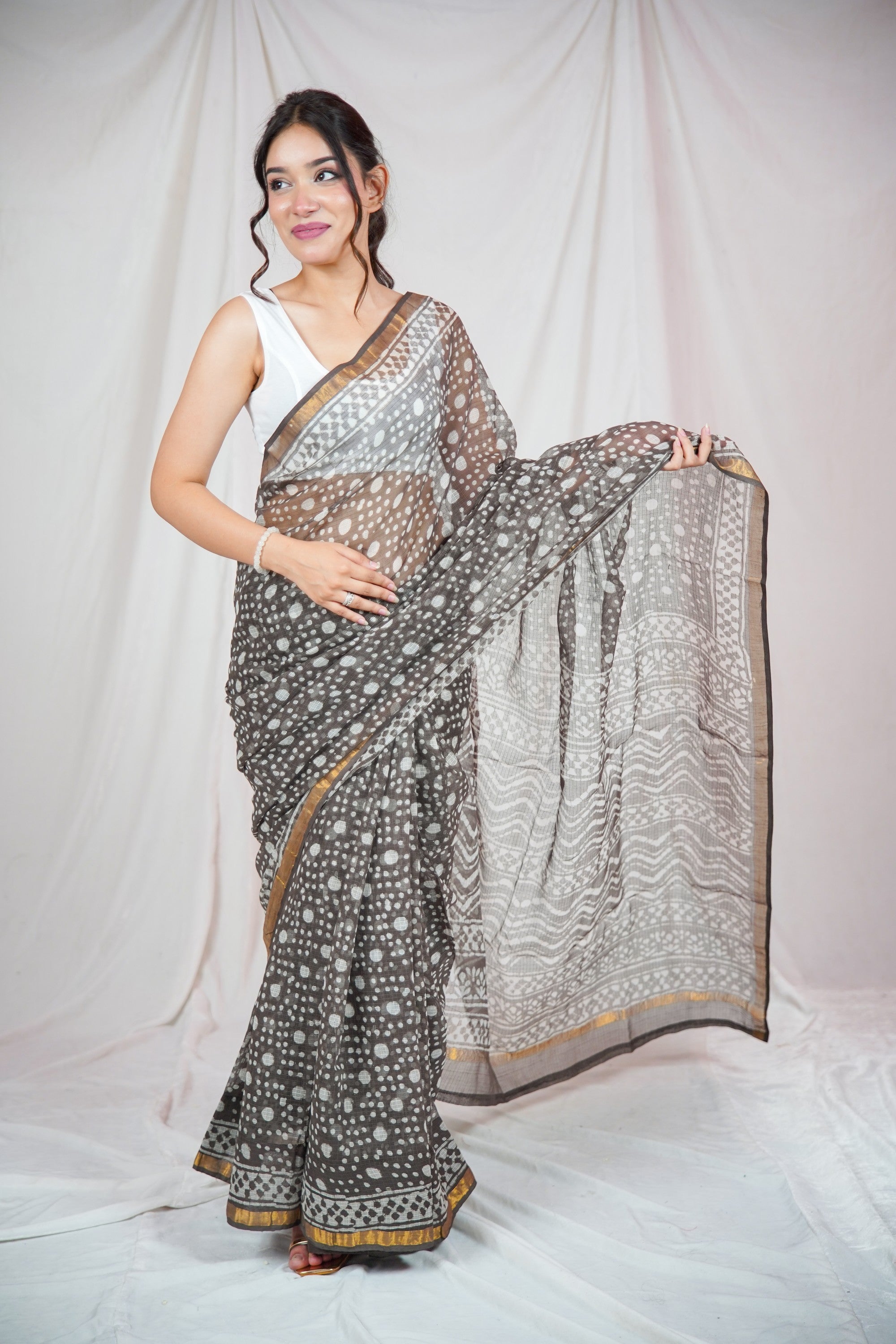 Cocoa Elegance- Kota Doria Saree