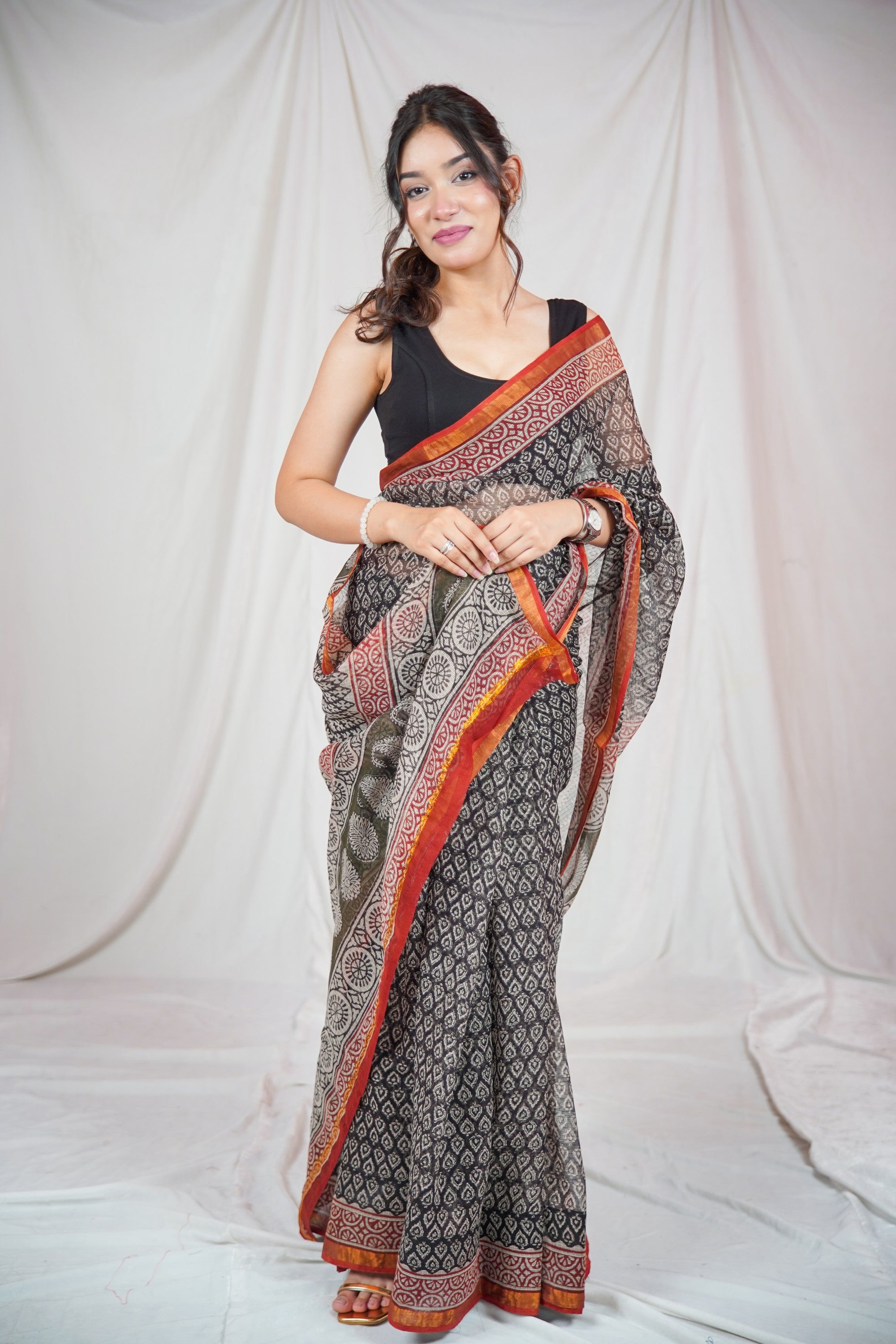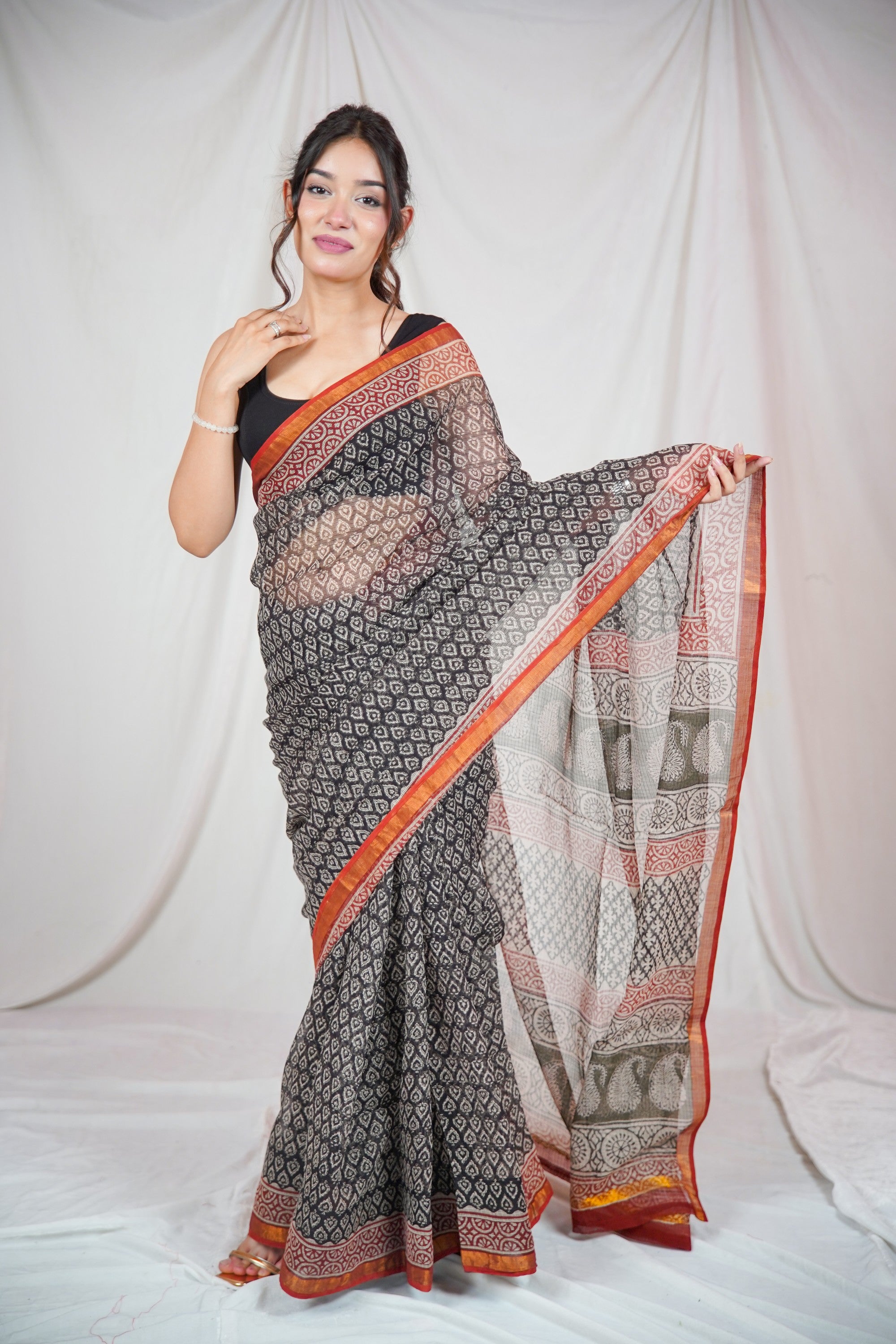 Kota Doria is a traditional fabric from Rajasthan, known for its lightweight and translucent qualities, making it ideal for sarees.