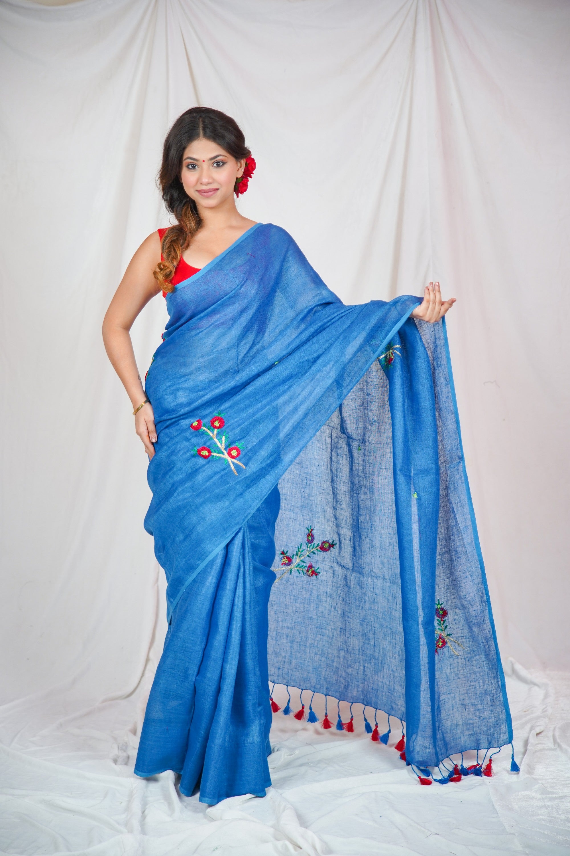 We recommend gentle hand washing or dry cleaning for linen sarees to maintain their quality and longevity.