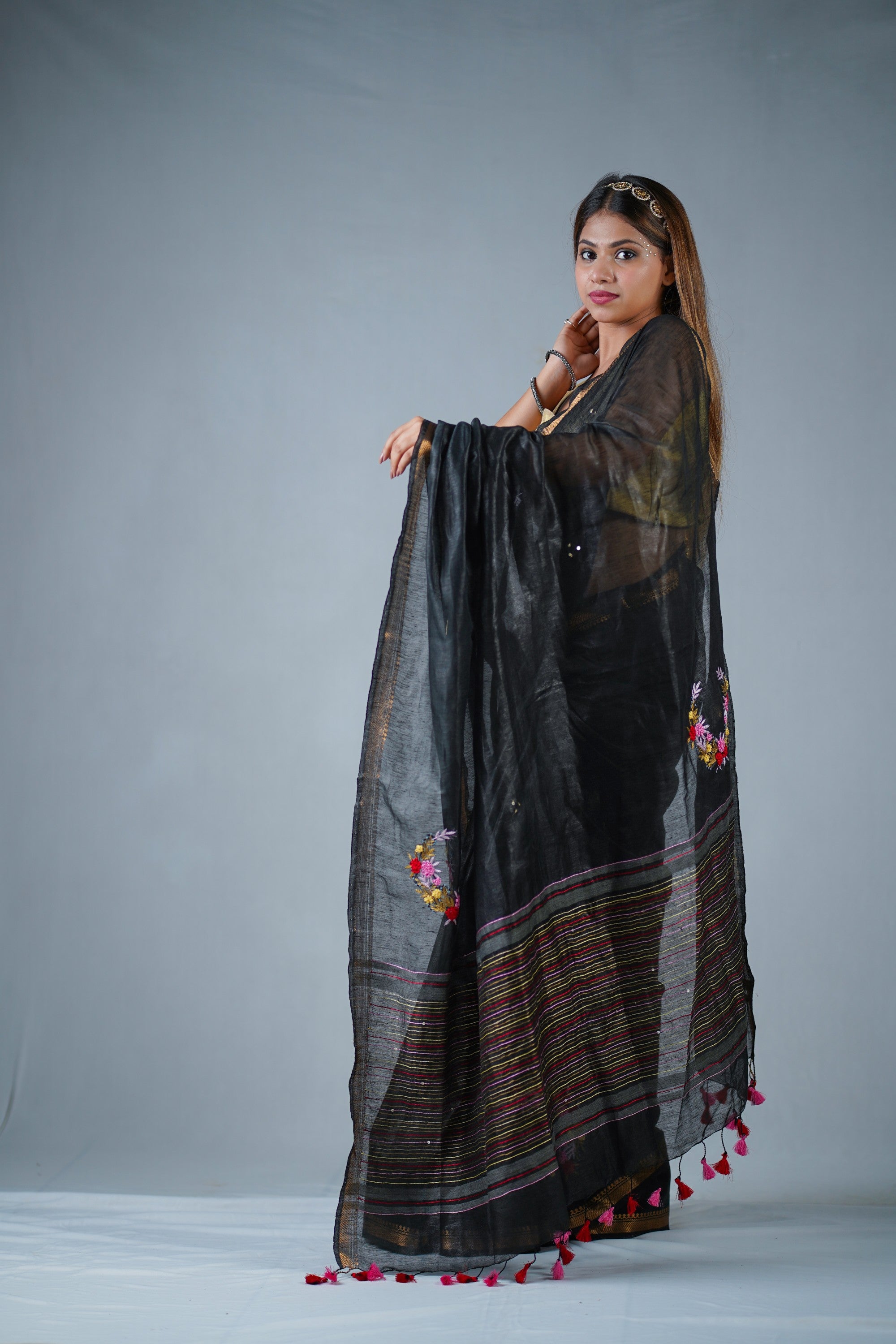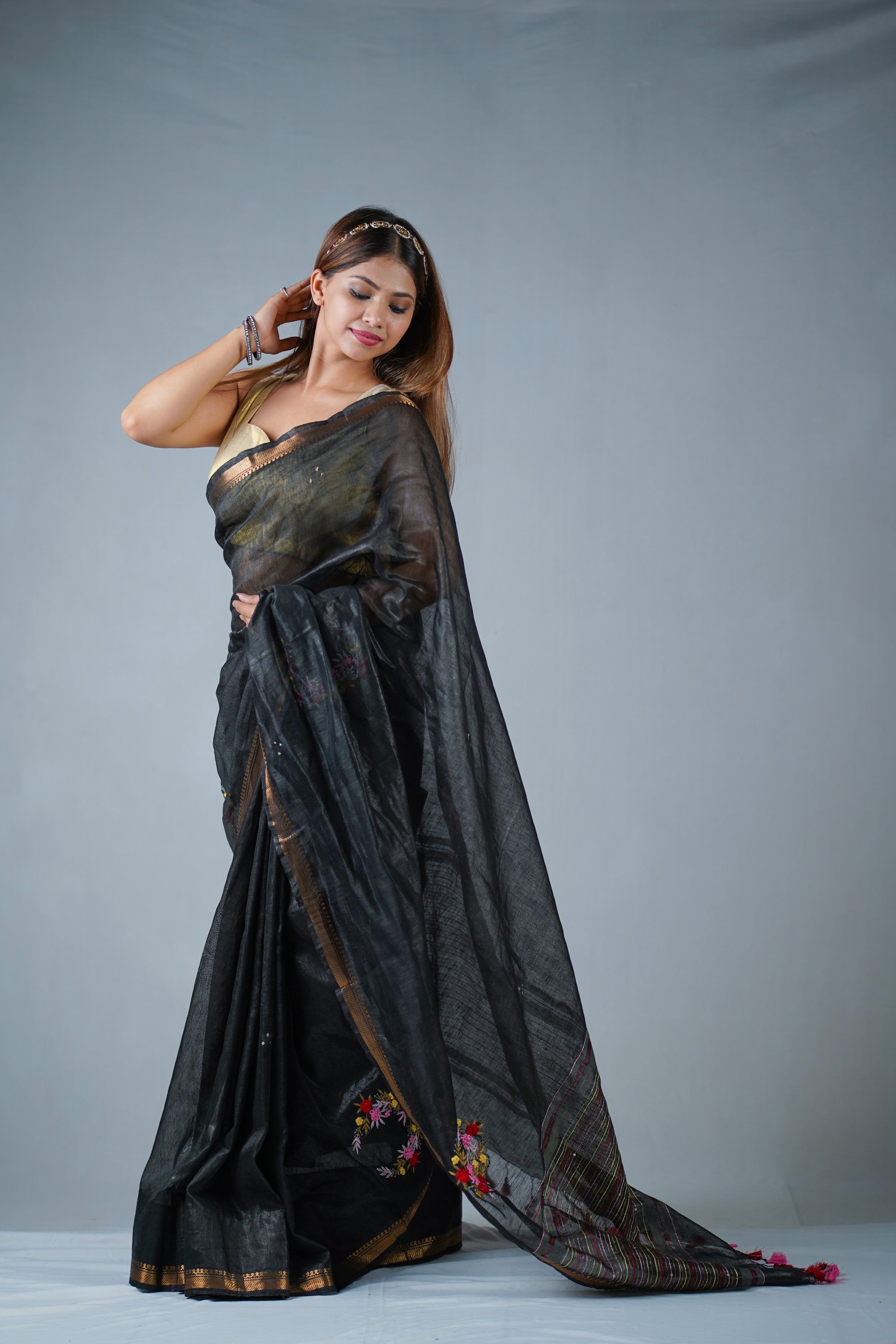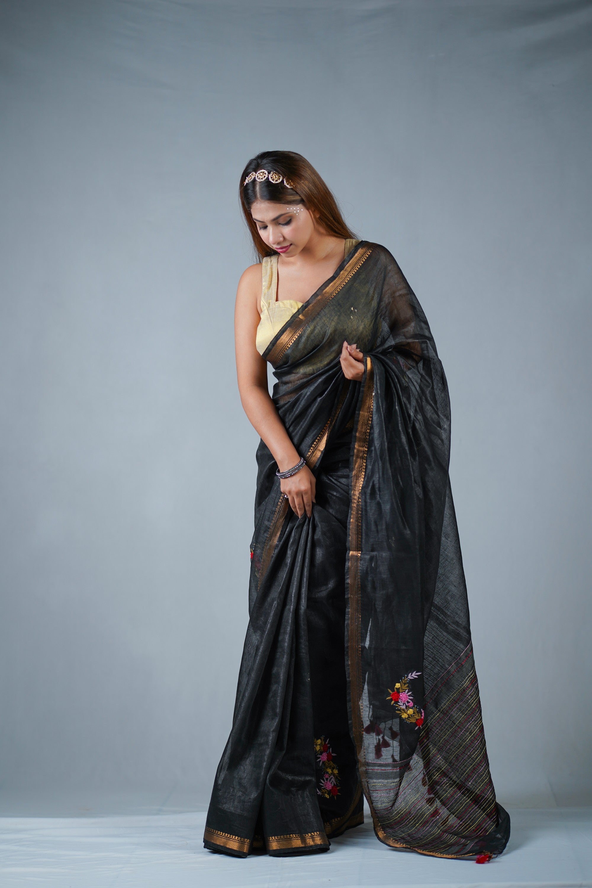 We recommend gentle hand washing or dry cleaning for linen sarees to maintain their quality and longevity.