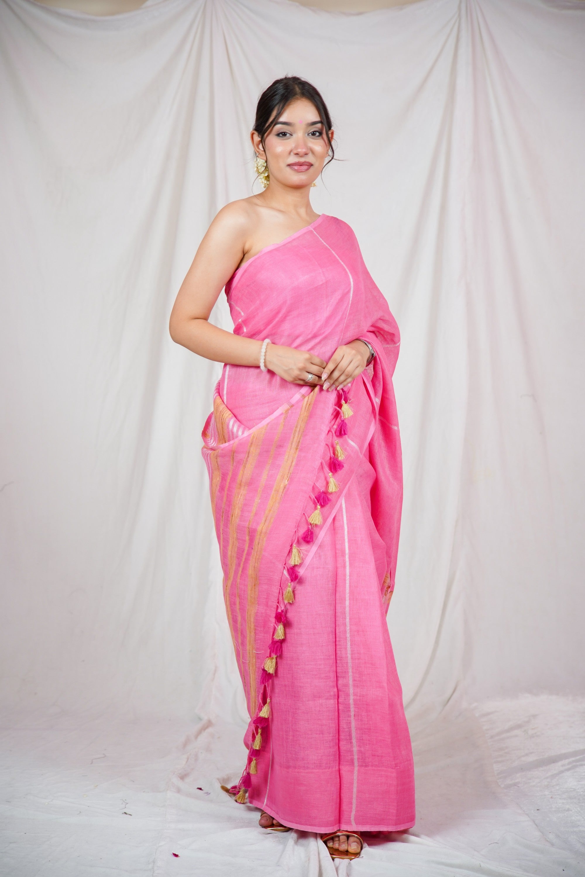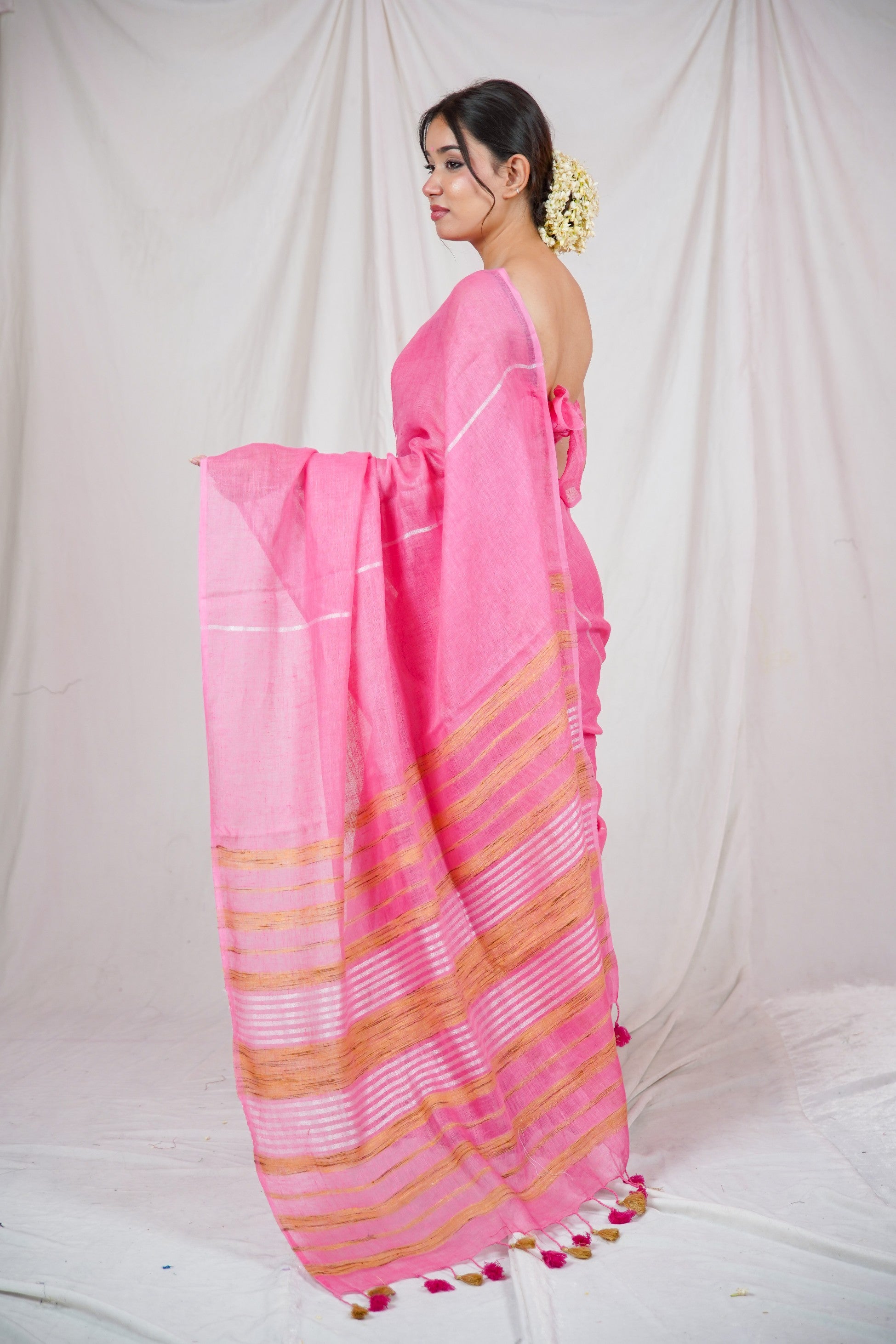 Gulabi Rekha- Pink Linen Saree