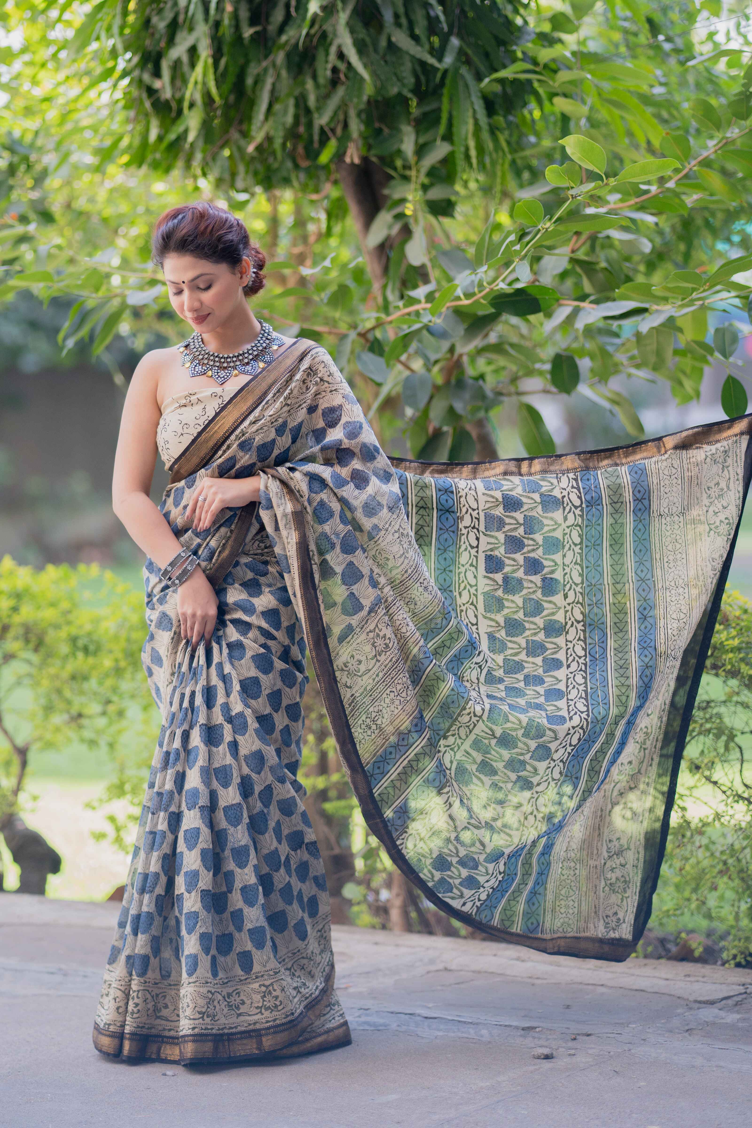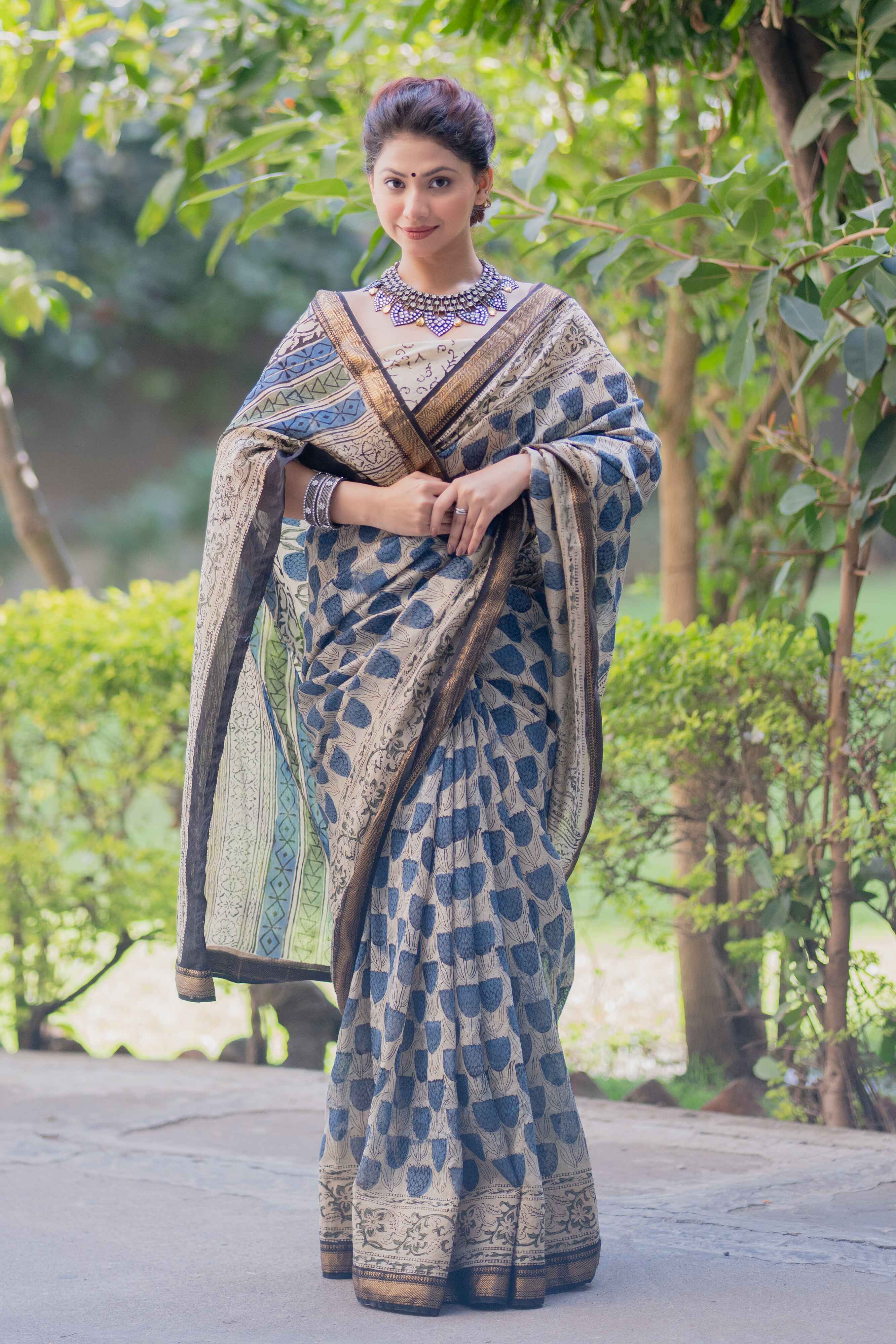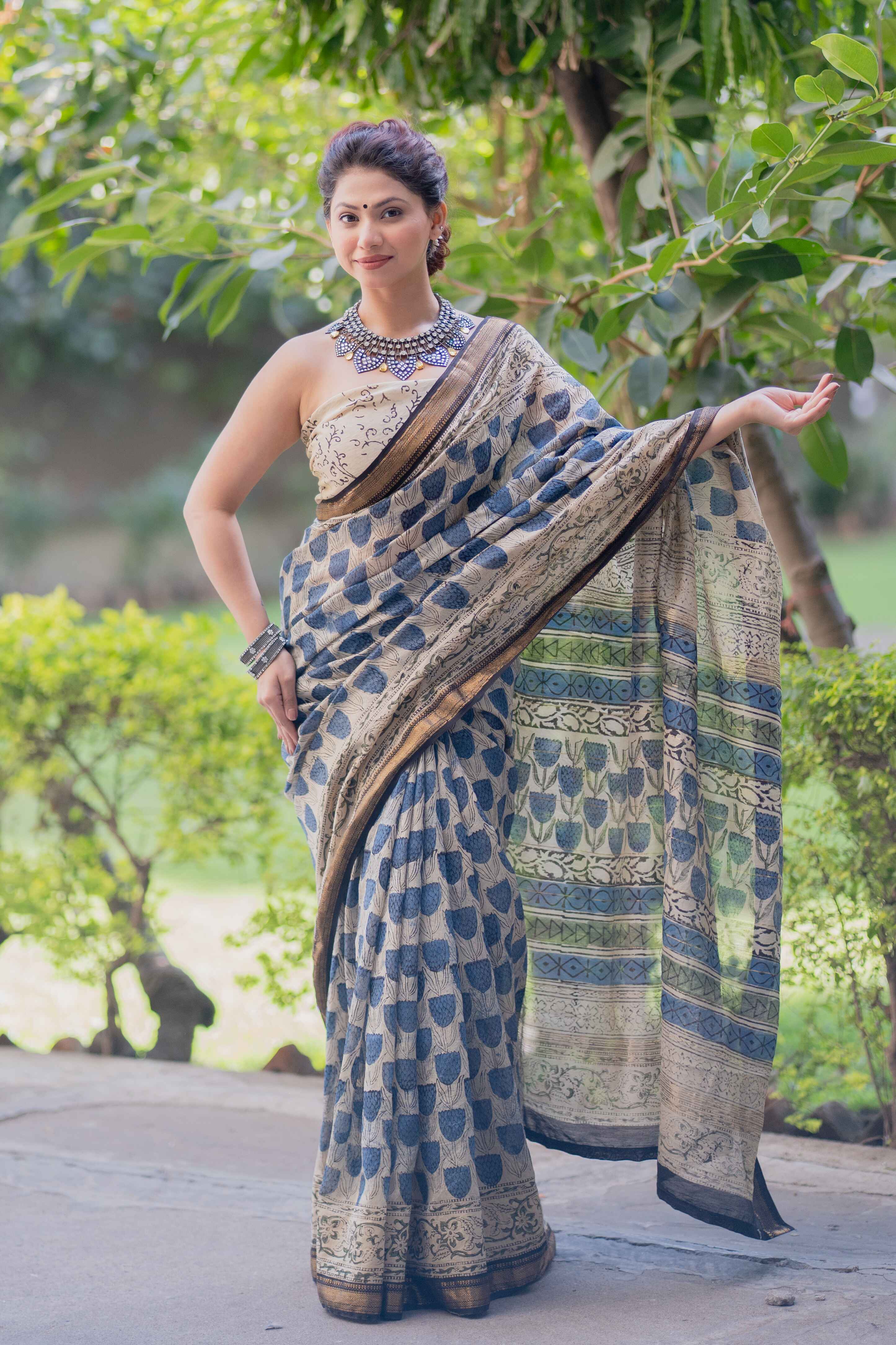 Elevate your ethnic collection with Indrani, a masterpiece of tradition and craftsmanship. Shop now and embrace the elegance of block-printed Maheshwari silk!