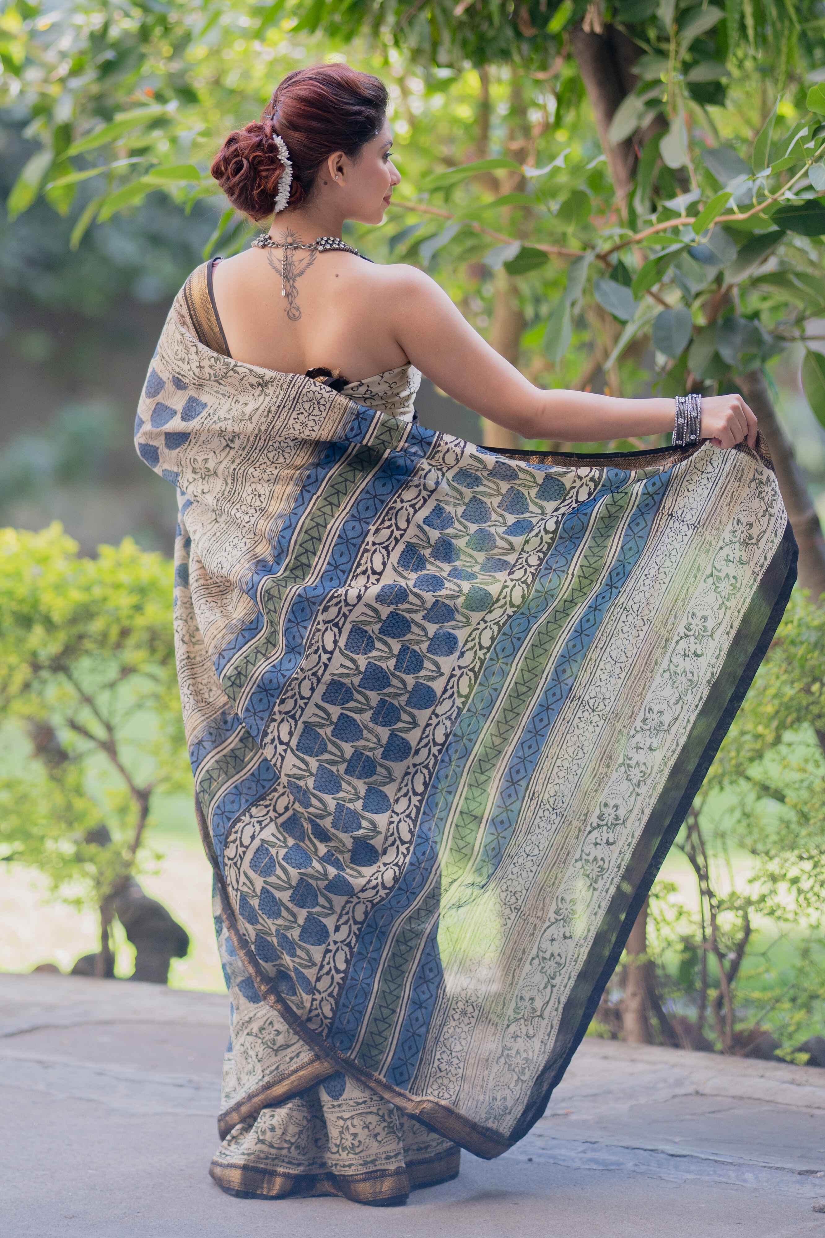 ✔ Blouse: Coordinated block-printed blouse, enhancing the saree’s charm.