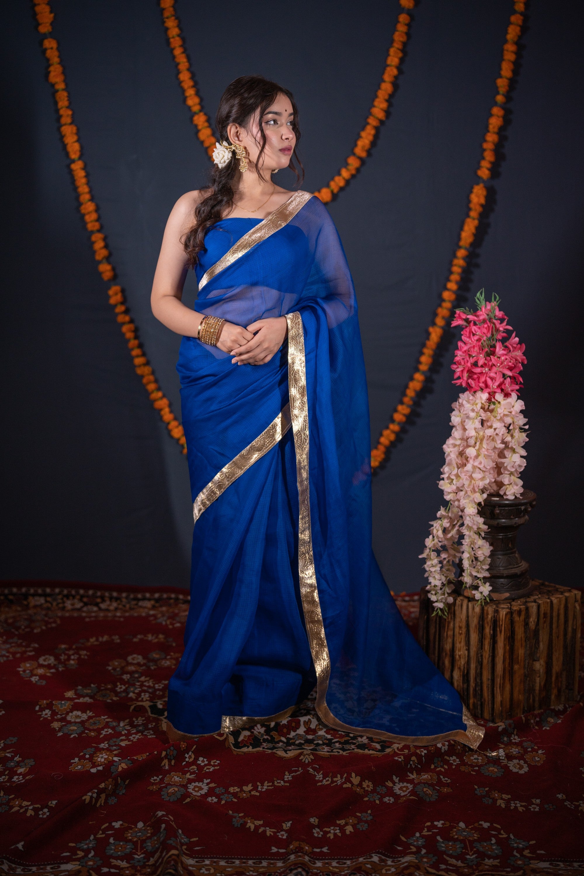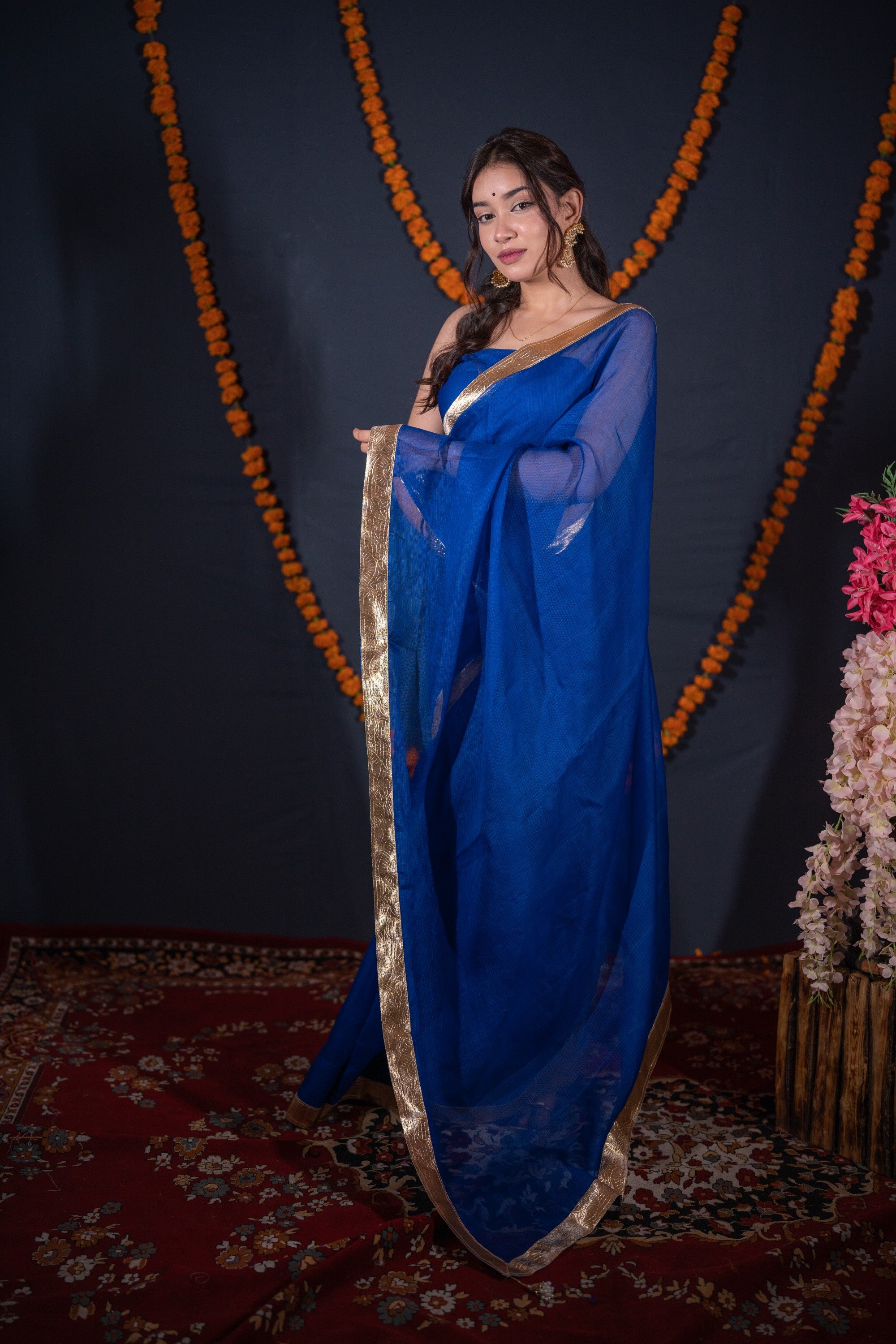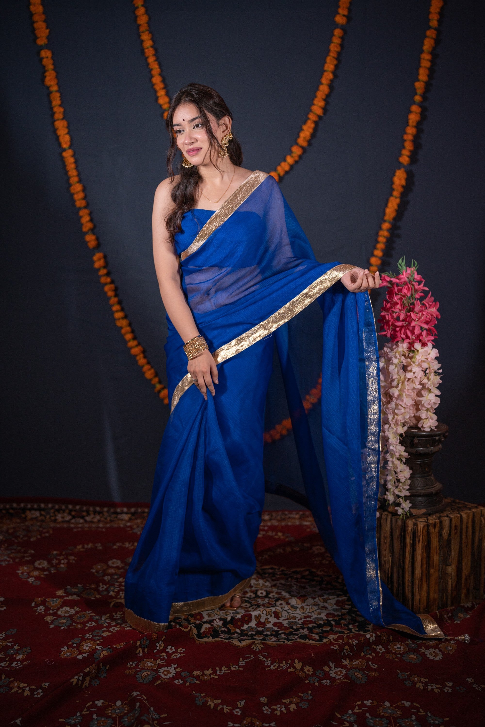 Whether it’s a wedding, Diwali, or any other festive occasion, this royal blue saree is your ideal choice. Its rich fabric and intricate detailing make it a timeless addition to your wardrobe.