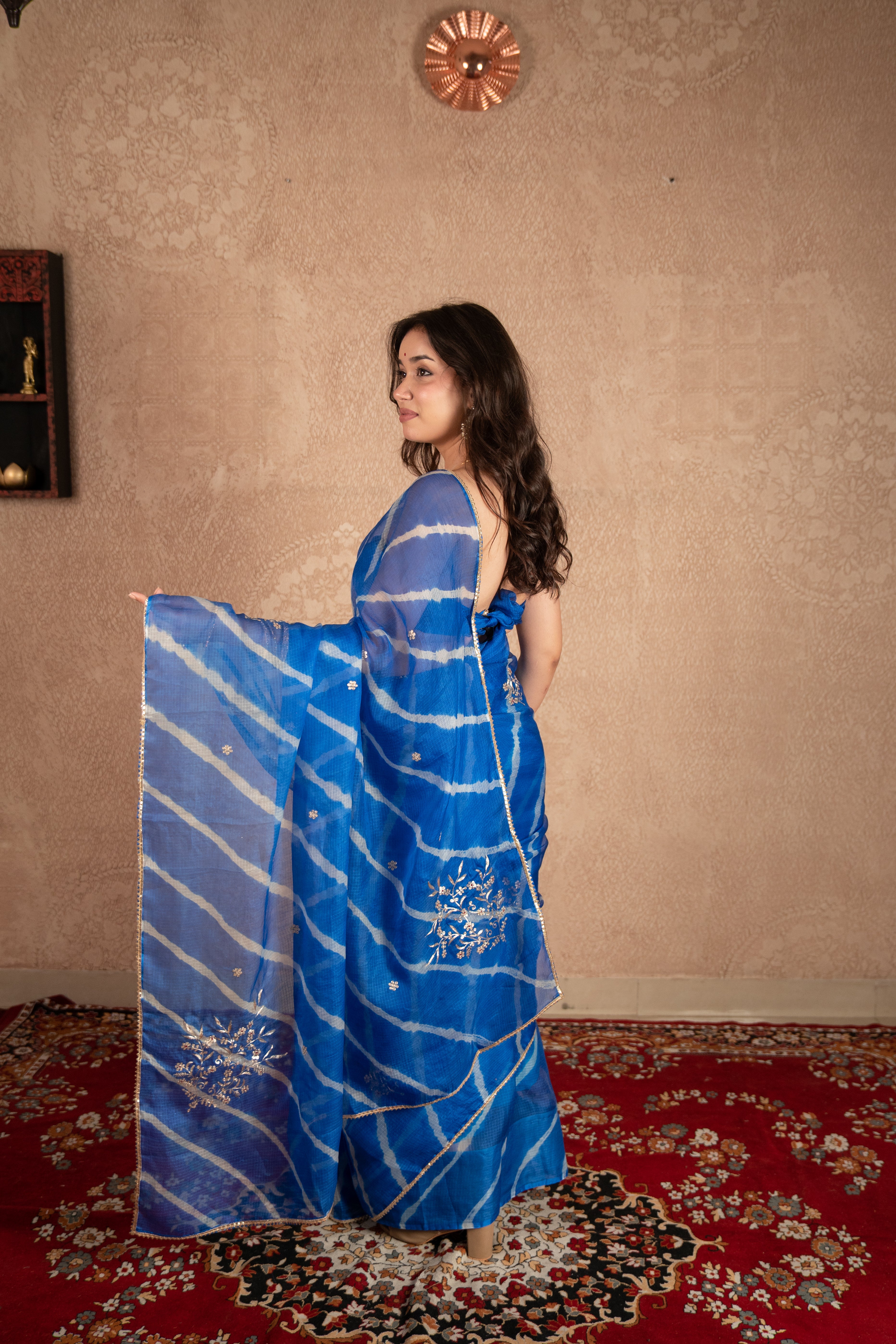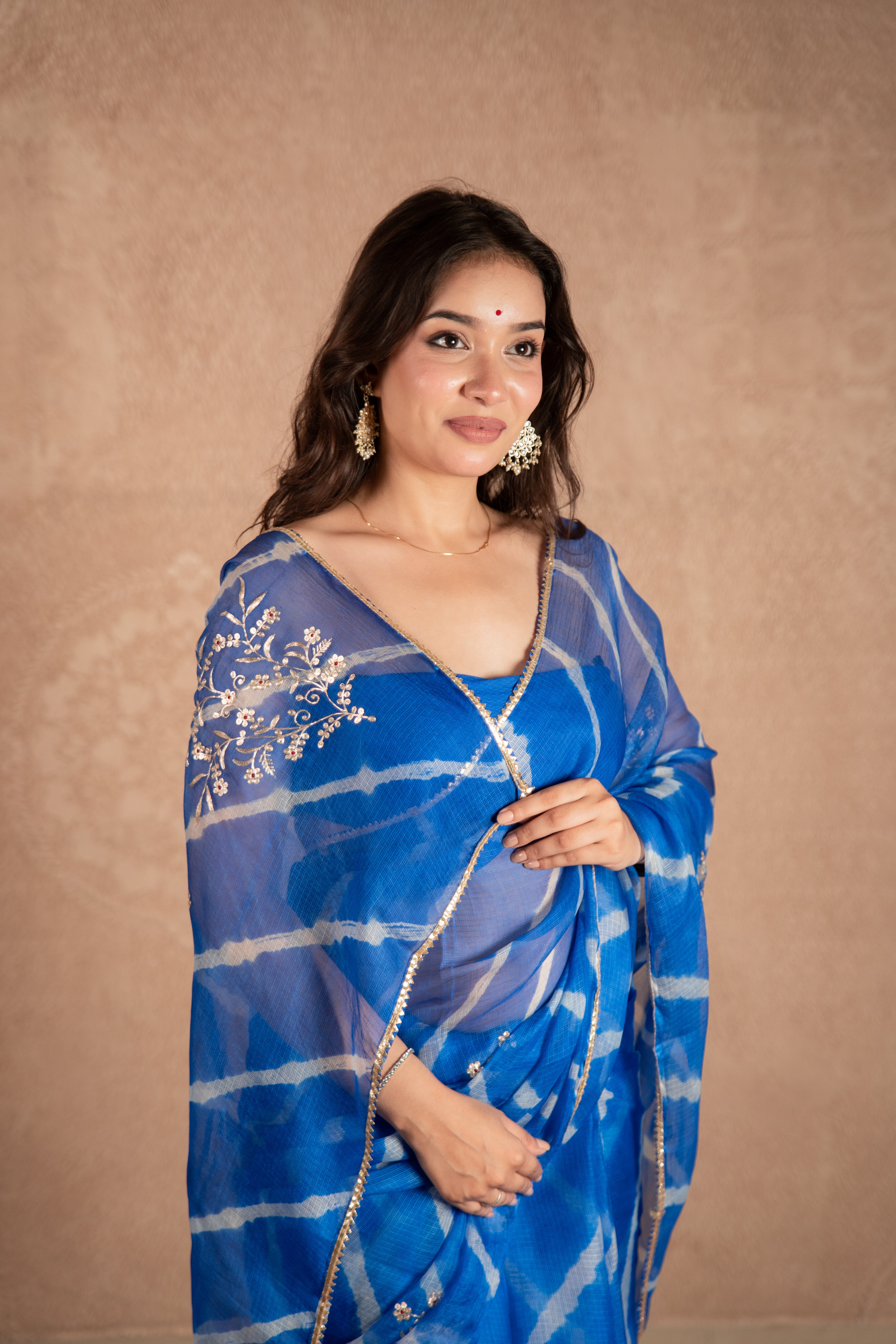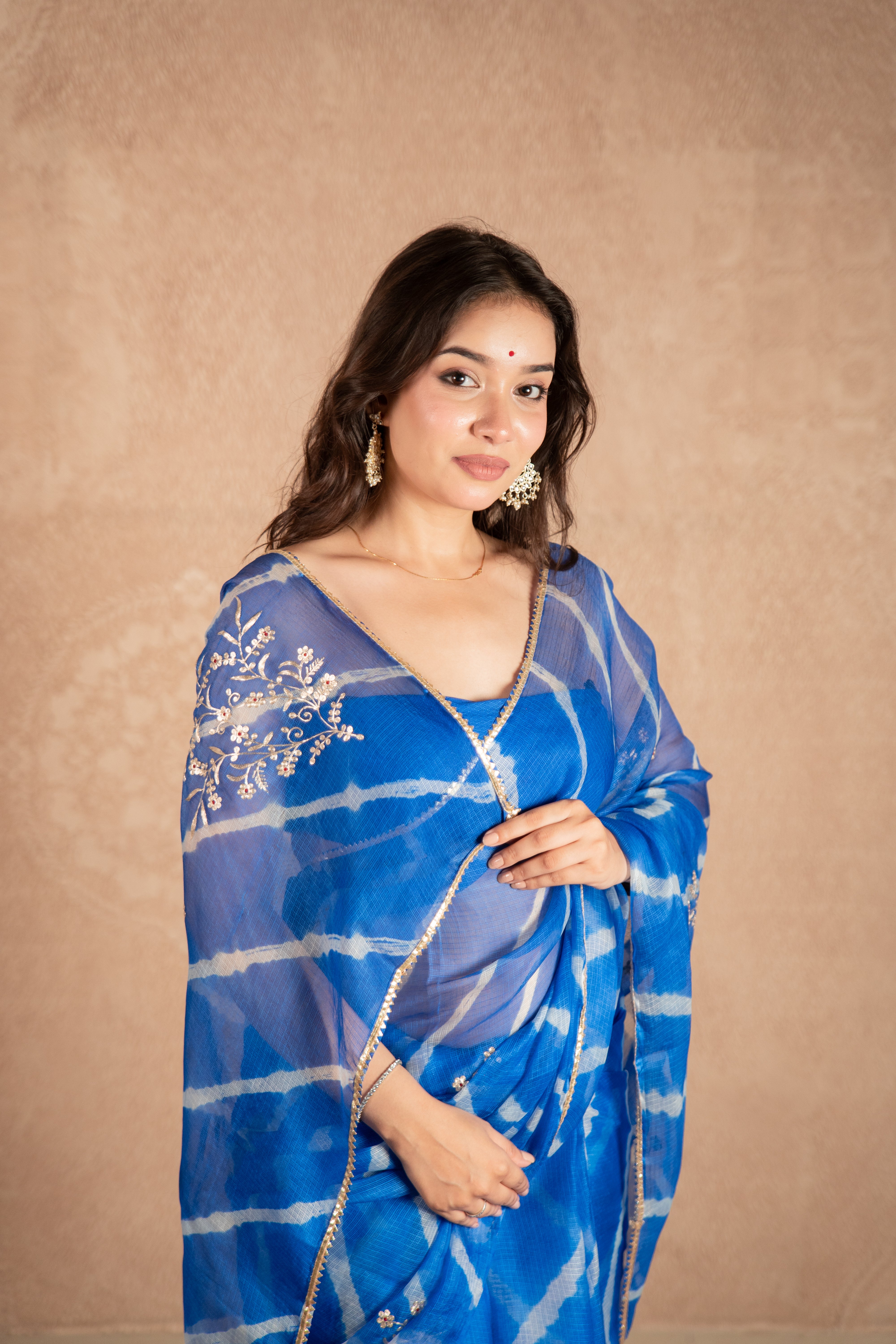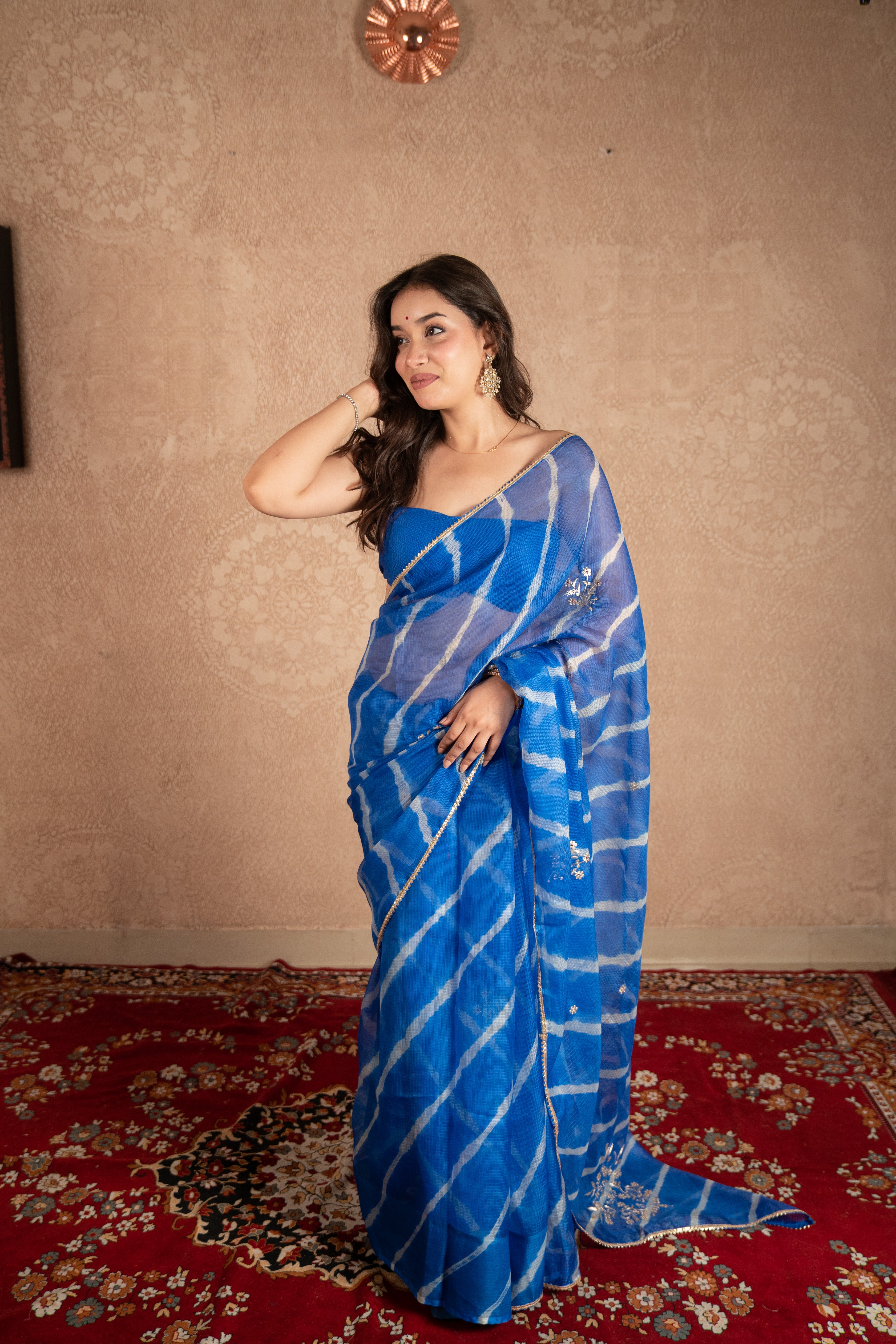 Design: Traditional blue Leheriya pattern with timeless appeal