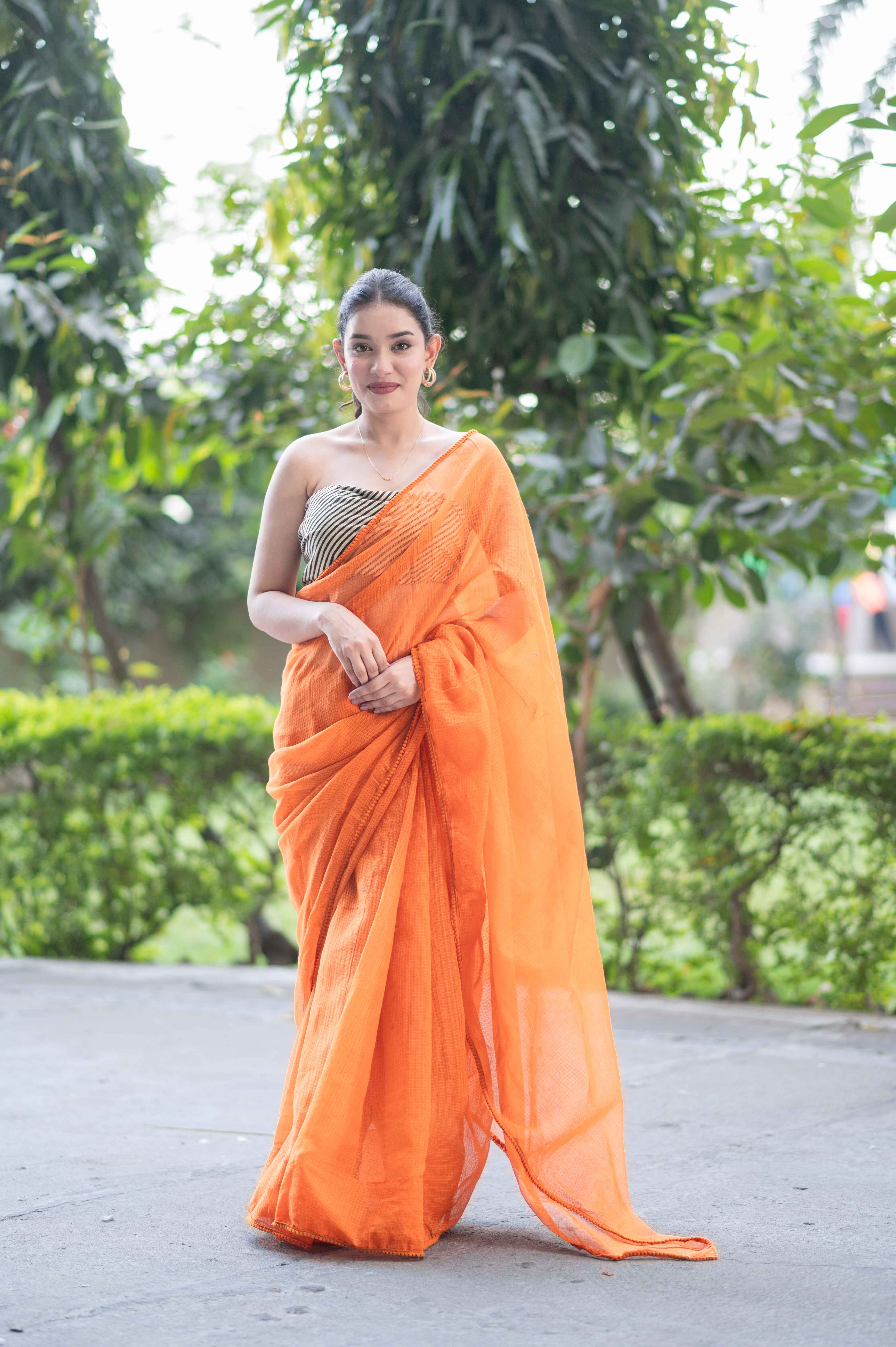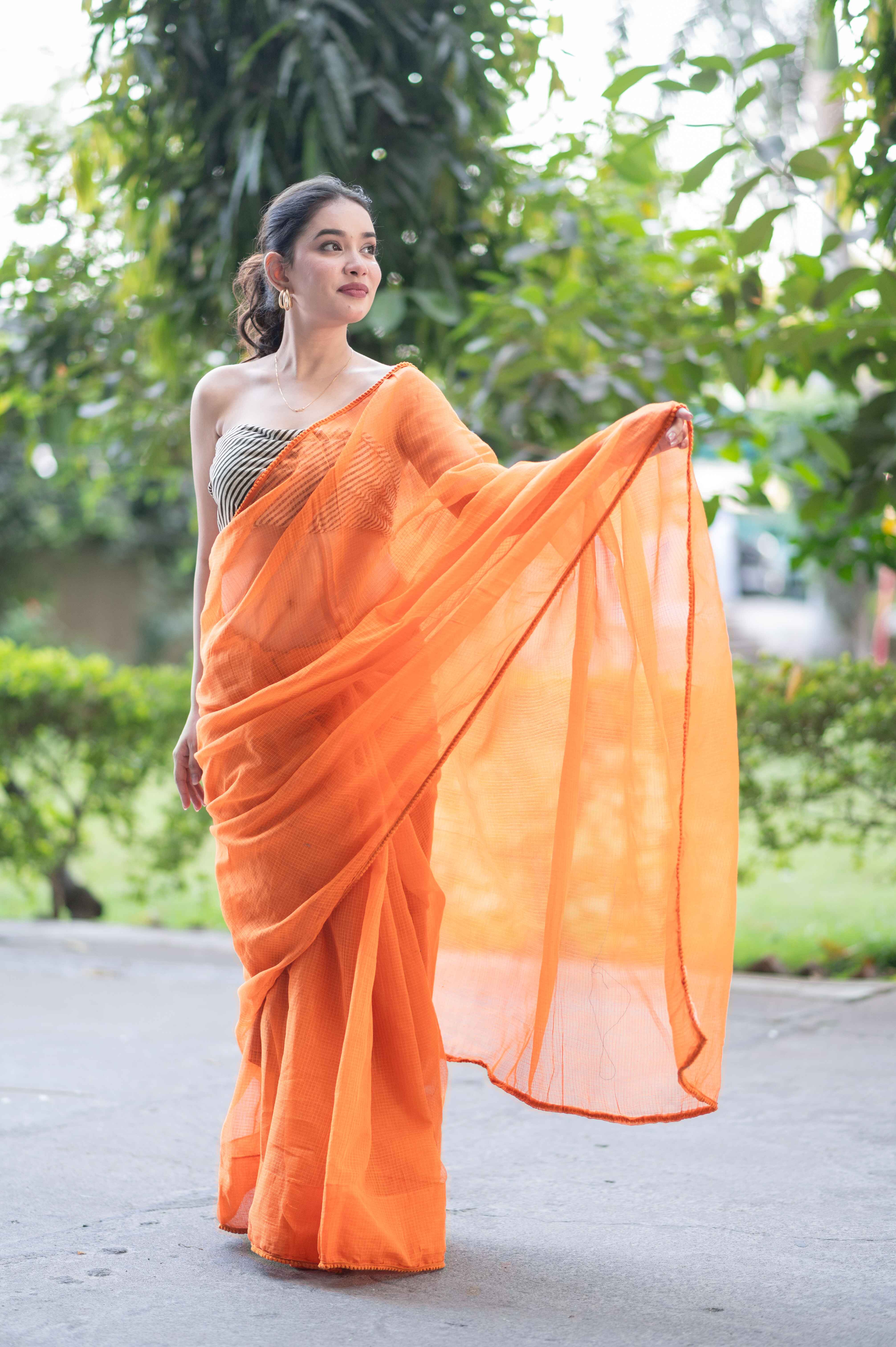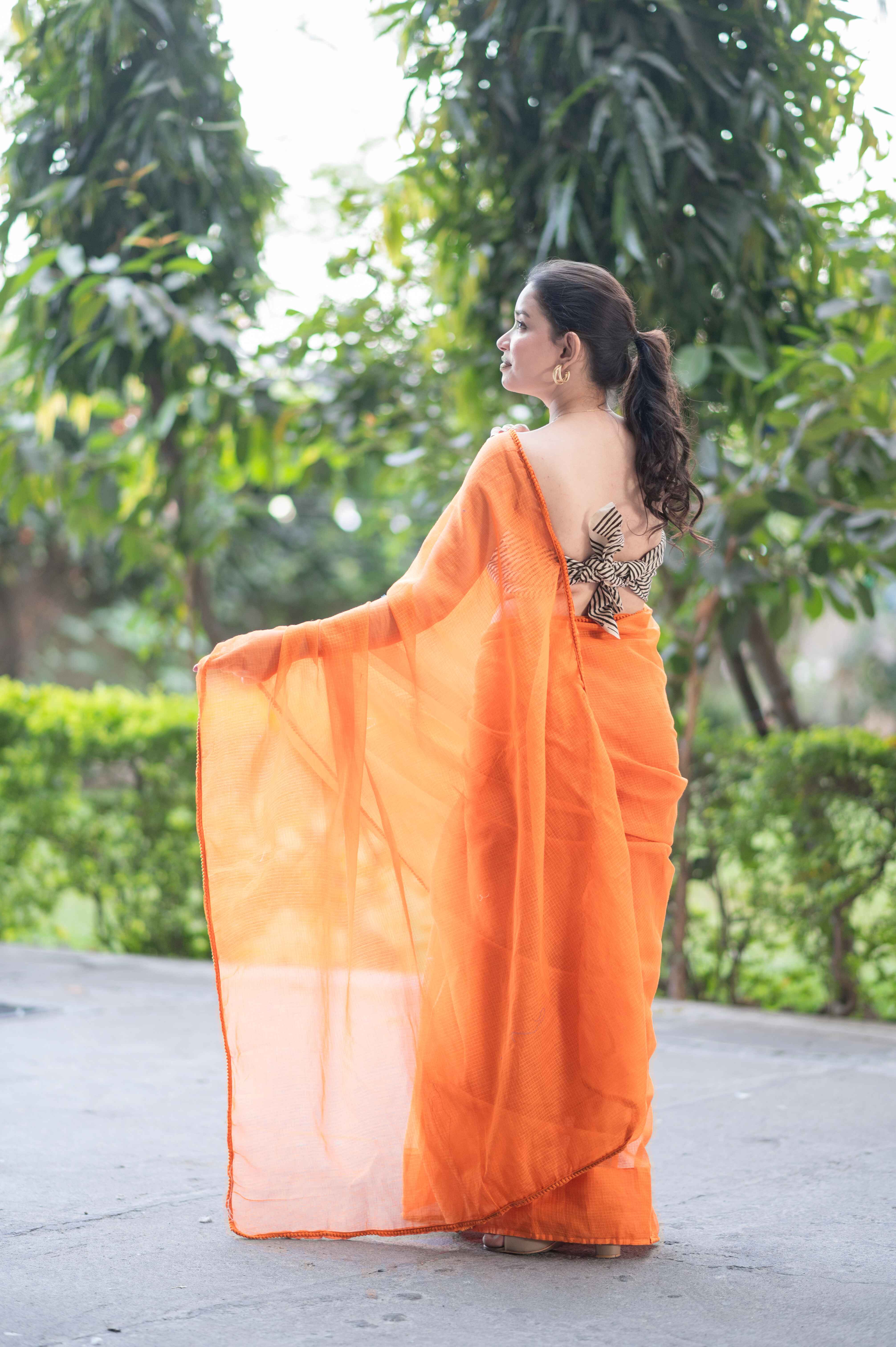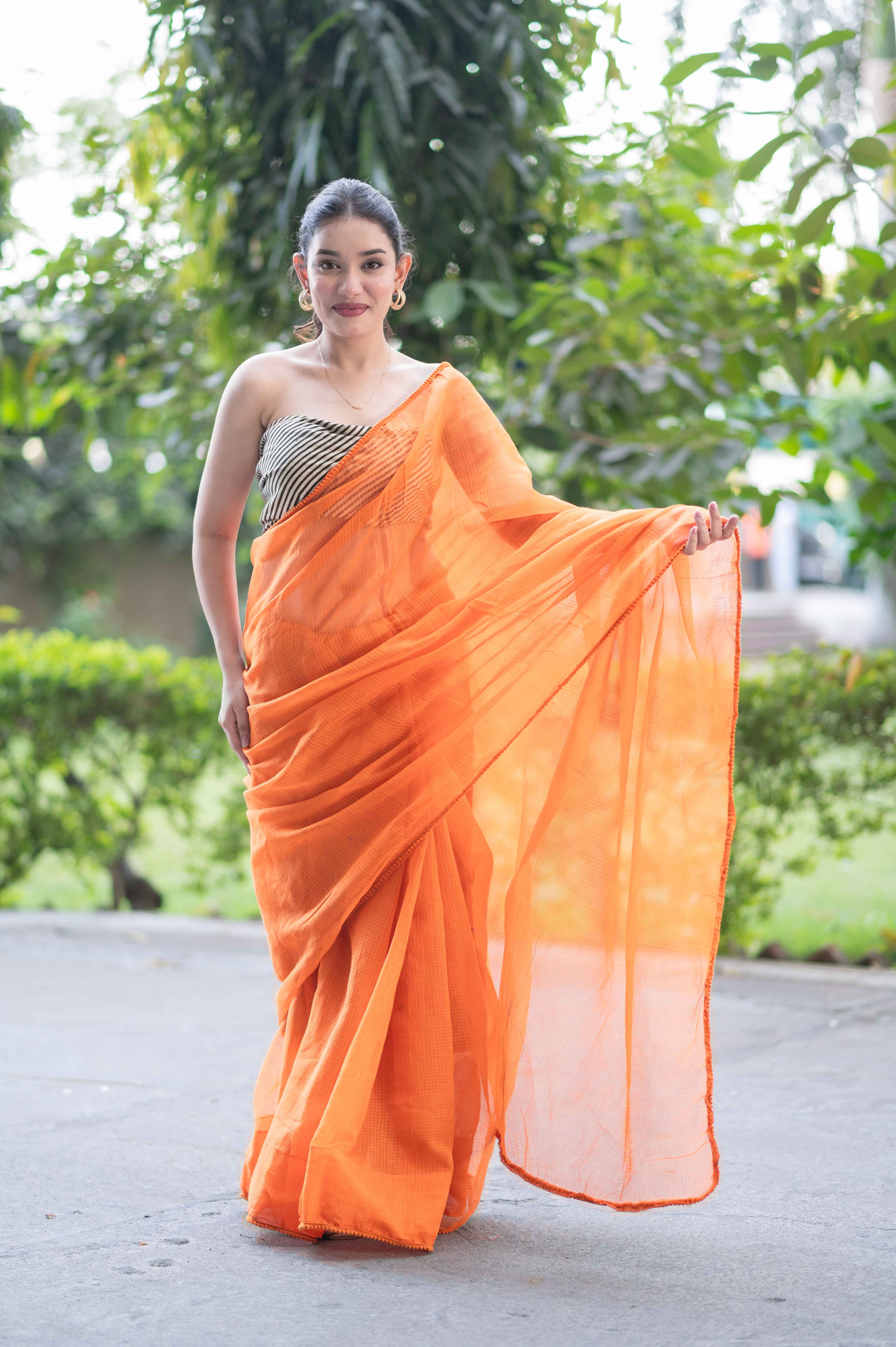 Embrace effortless elegance with the Orange Lush Kota Doria Saree. Perfect for casual outings, festive celebrations, or intimate gatherings. Limited stock available – order yours today! ✨💛