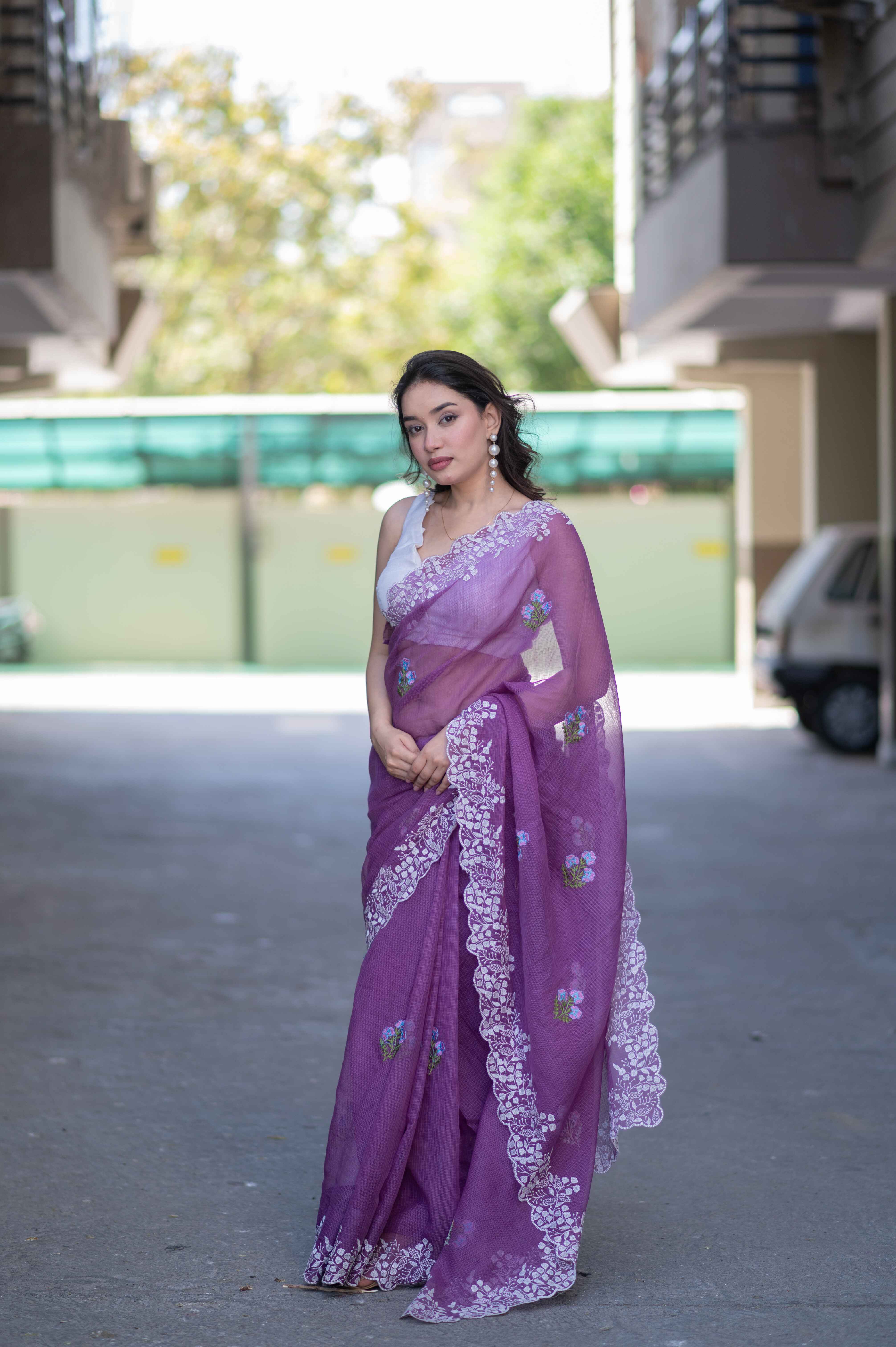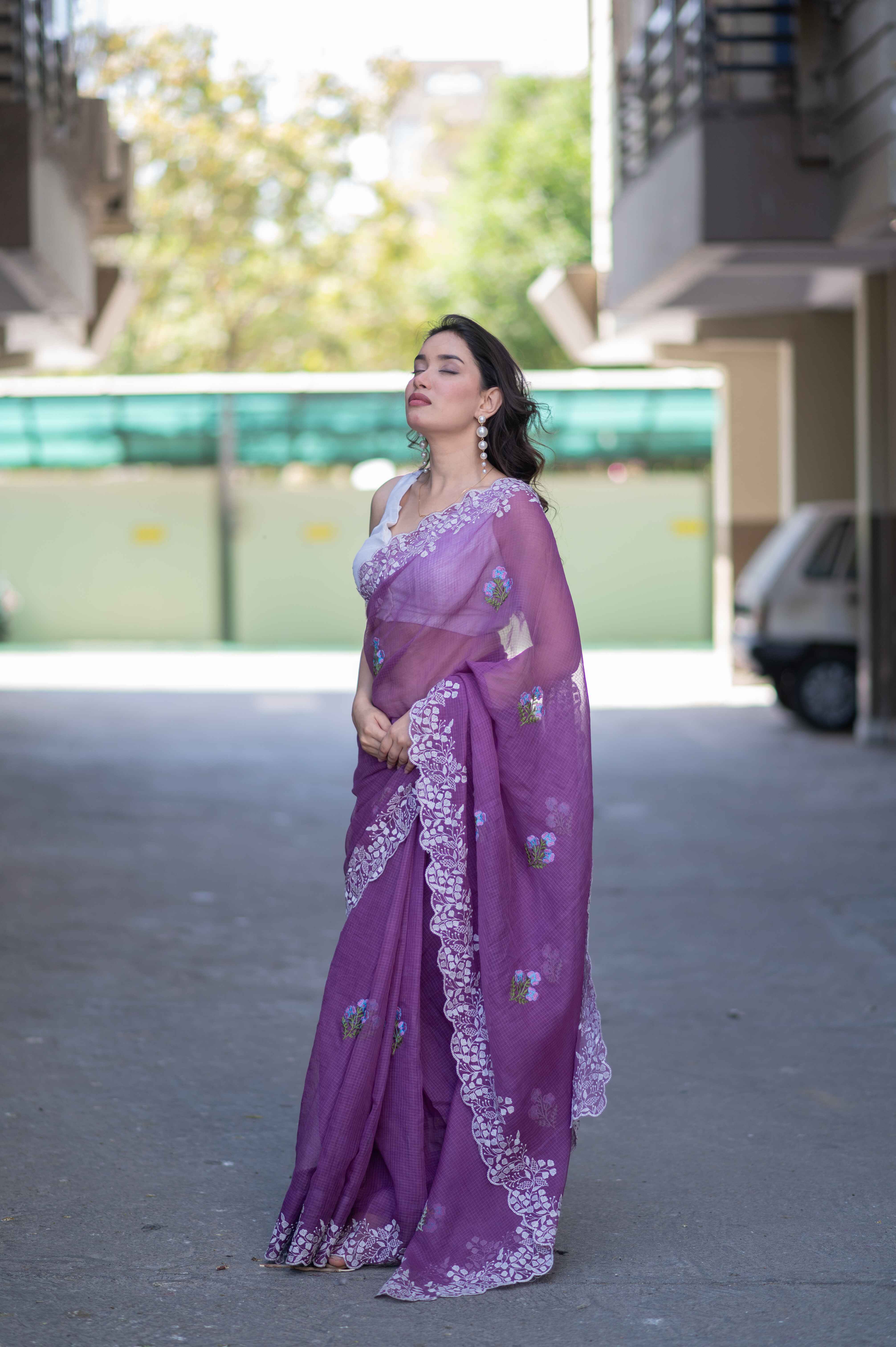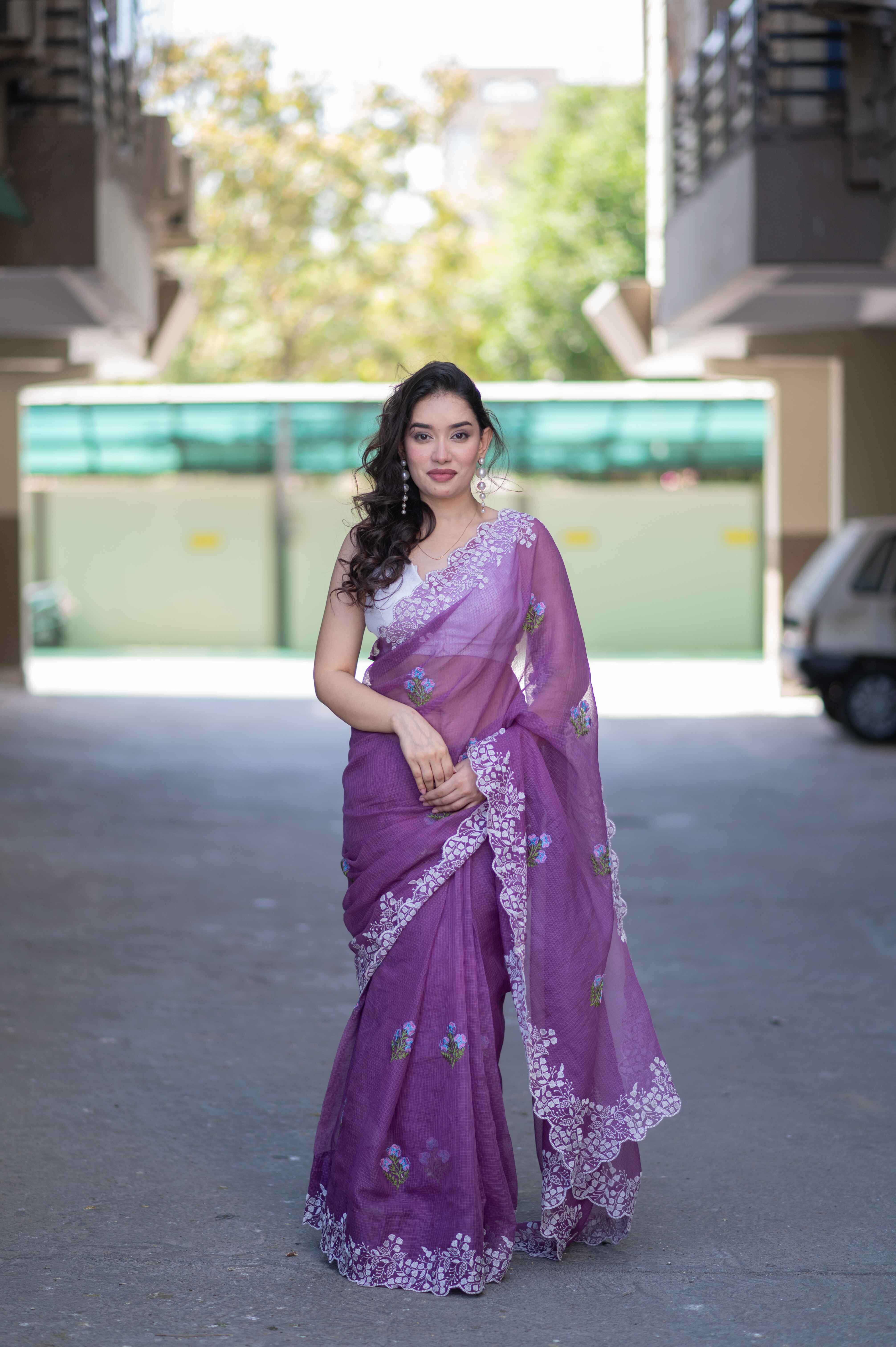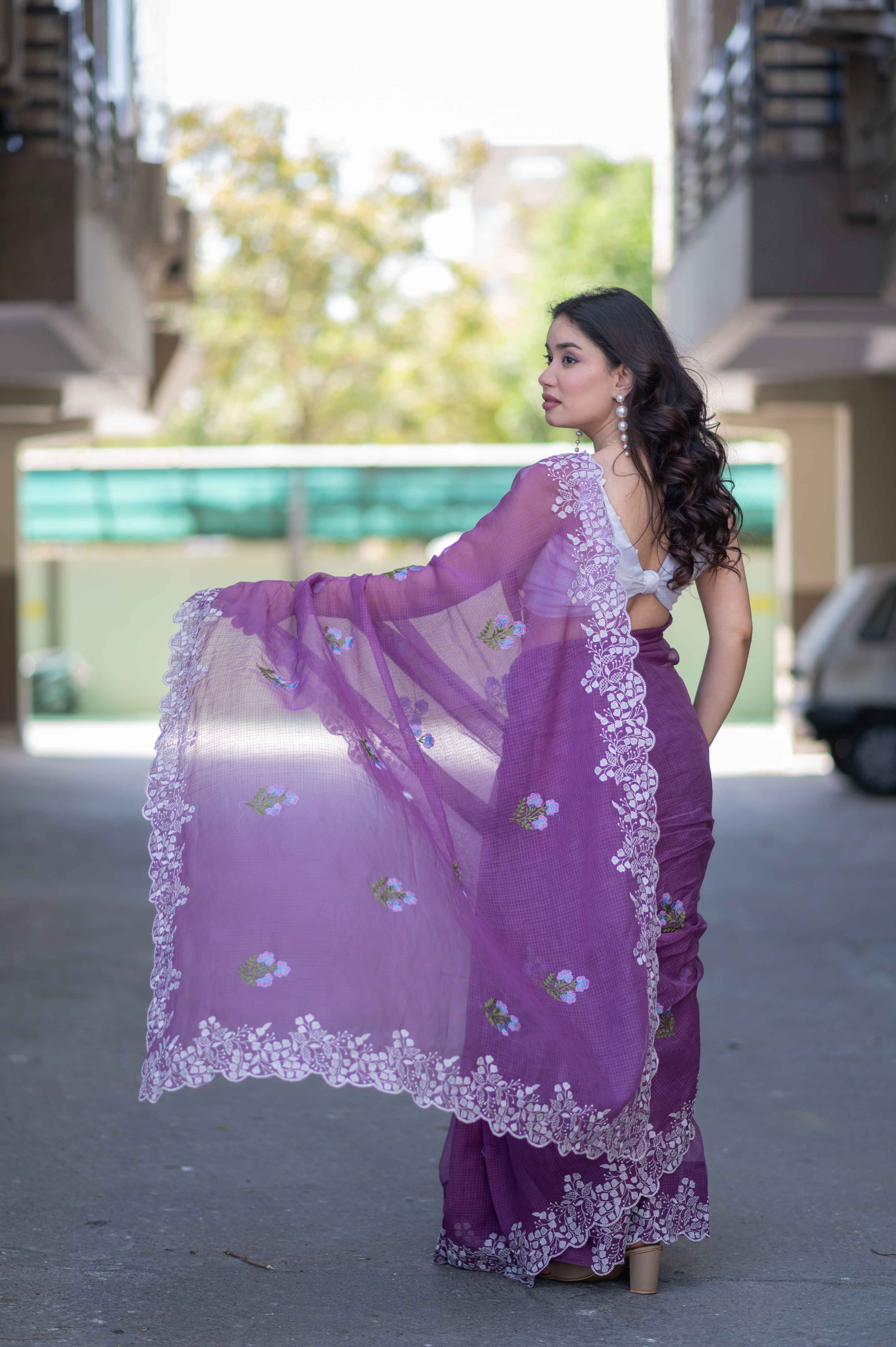 Drape yourself in elegance with our Plum Allure Embroidered Kota Doria Saree, a perfect blend of tradition and contemporary charm. Designed exclusively for our brand, this saree is a timeless addition to your wardrobe, exuding grace and sophistication for every occasion.
