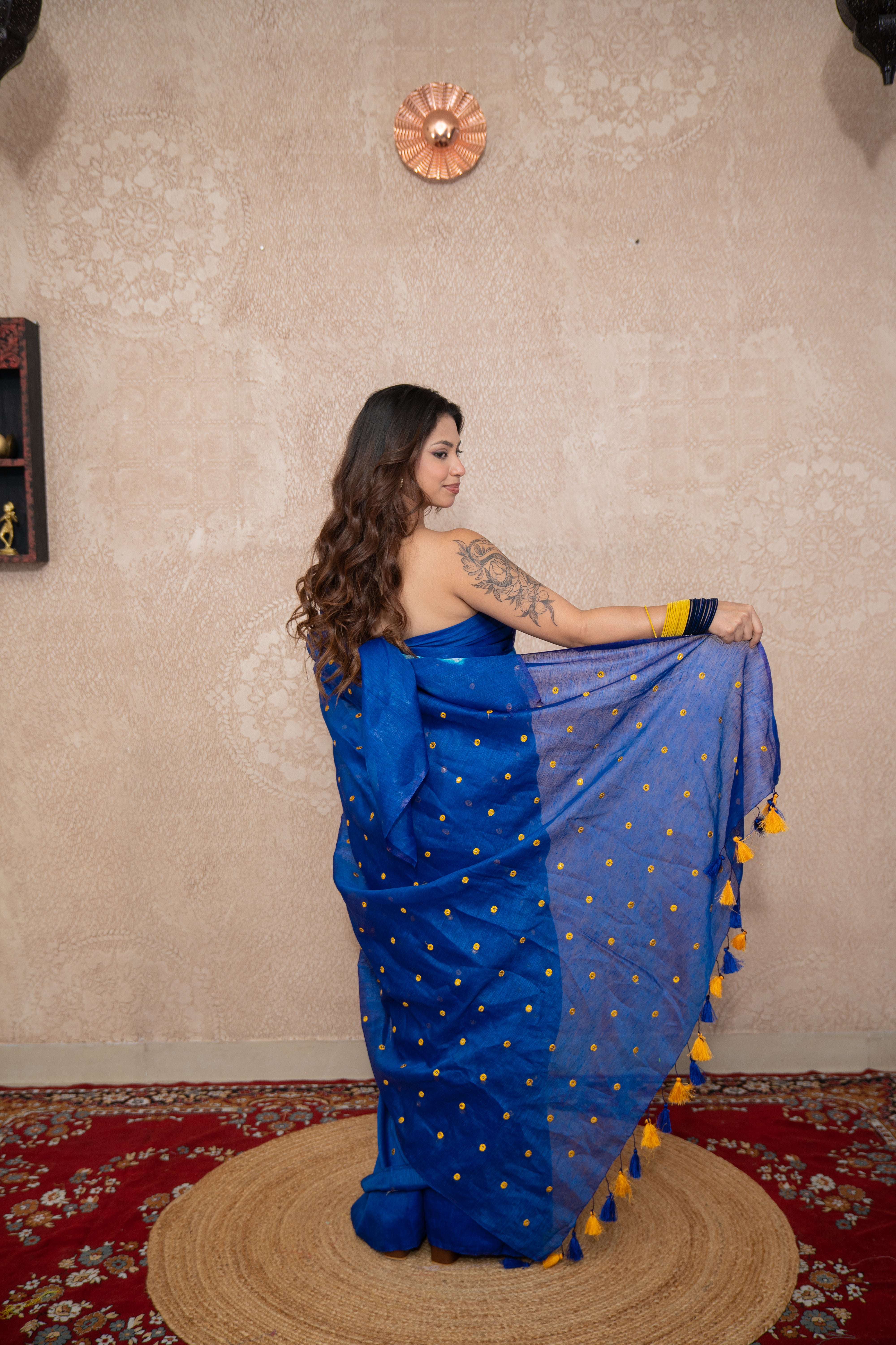 We recommend gentle hand washing or dry cleaning for linen sarees to maintain their quality and longevity.
