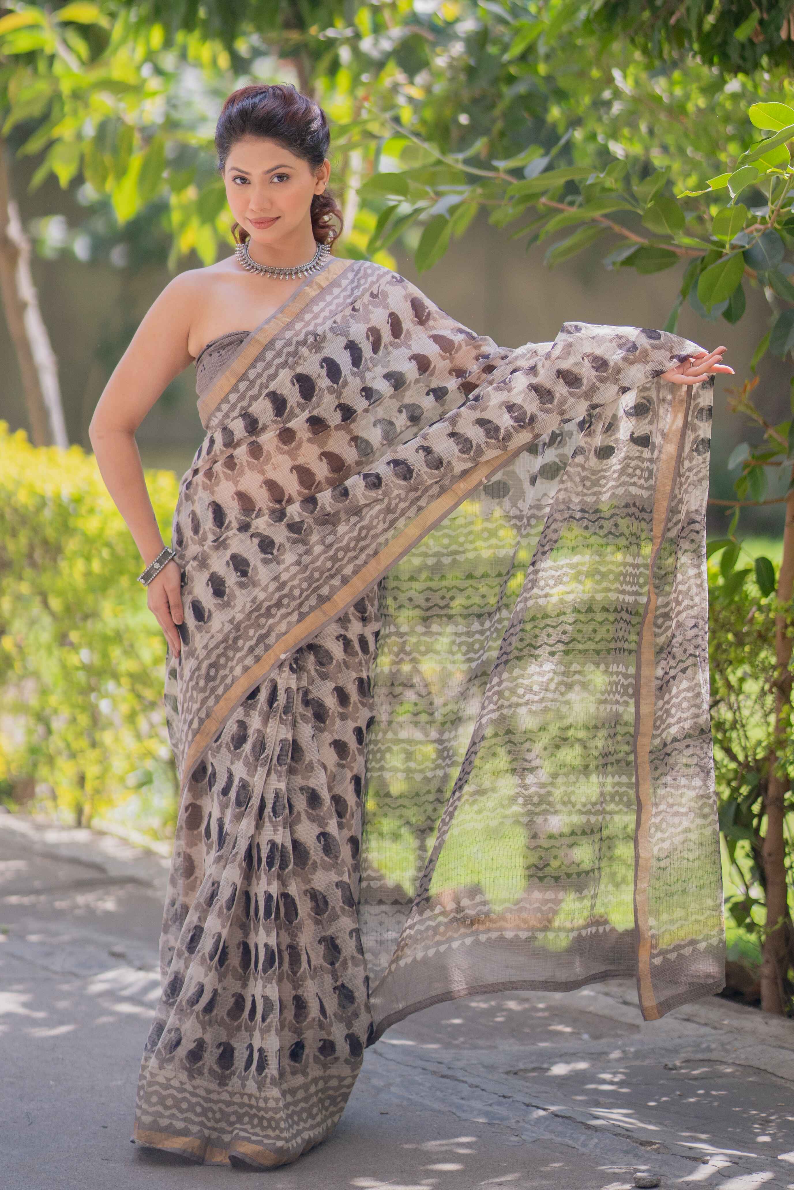 Elevate your ethnic wardrobe with Rajshree, a timeless Cream Kota Doria Saree adorned with elegant black buti prints. This masterpiece blends traditional craftsmanship with effortless grace, making it a must-have for any occasion. Part of our exclusive Ashi Collection, this saree embodies the perfect balance of heritage and modern sophistication.