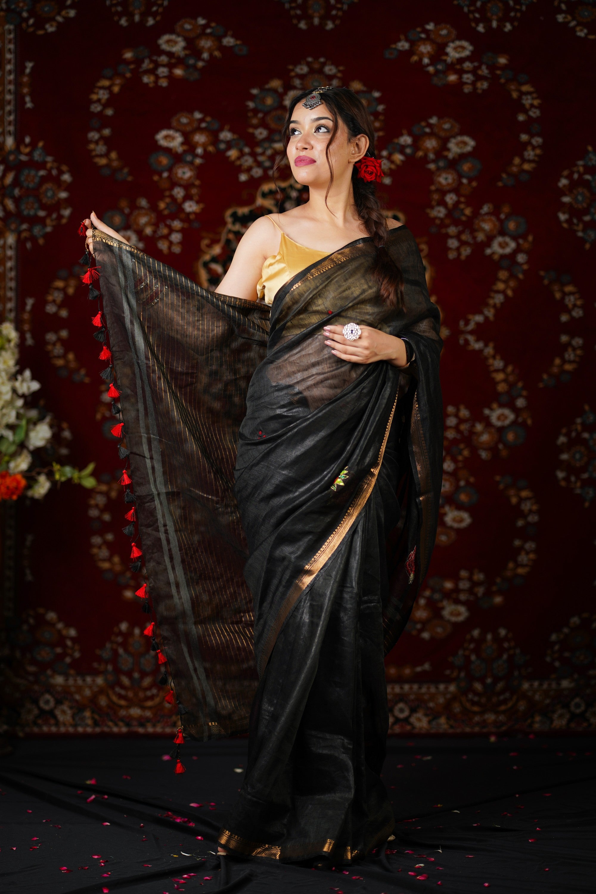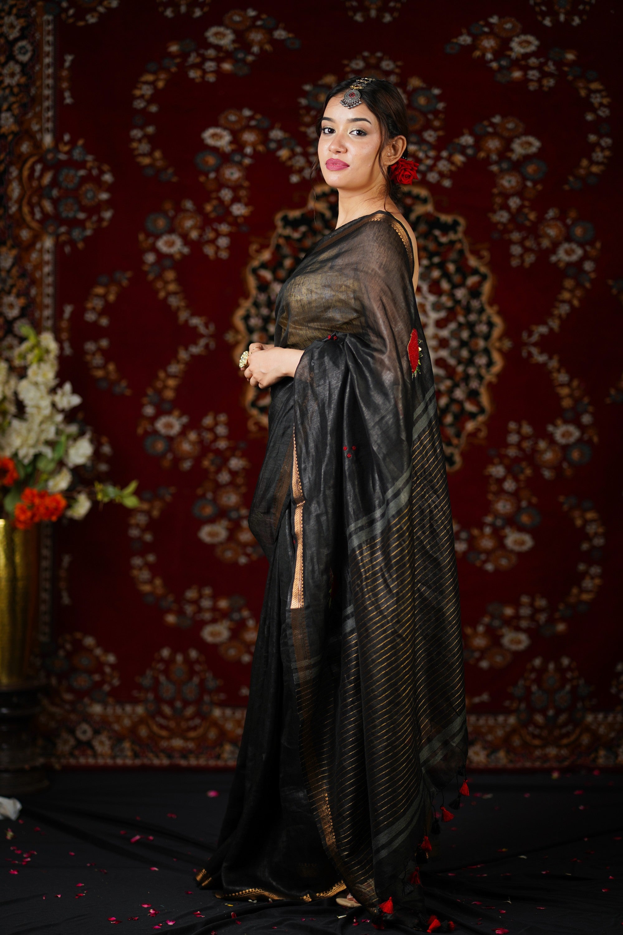 We recommend gentle hand washing or dry cleaning for linen sarees to maintain their quality and longevity.