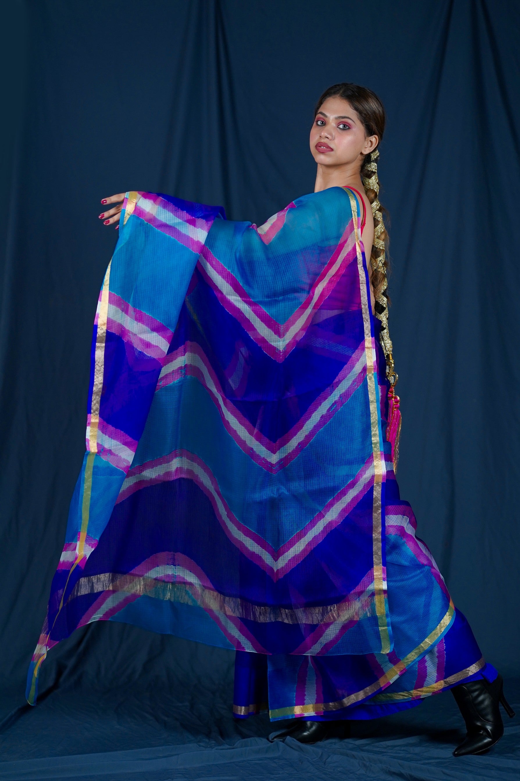 Kota Doria is a traditional fabric from Rajasthan, known for its lightweight and translucent qualities, making it ideal for sarees.