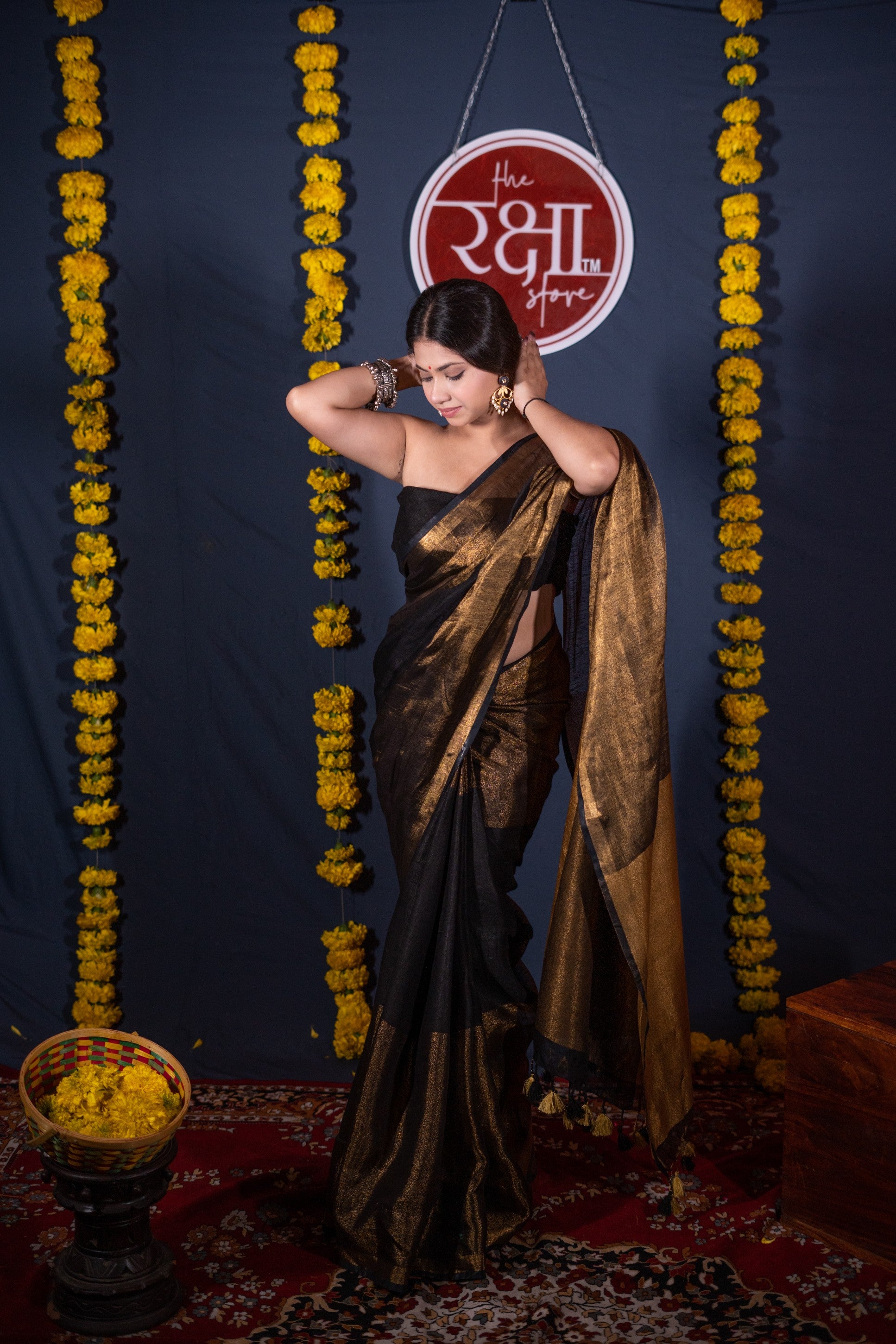 Add the Sarita Black Copper Linen Saree to your wardrobe and experience the perfect blend of tradition and modernity. Shop now and redefine elegance!
