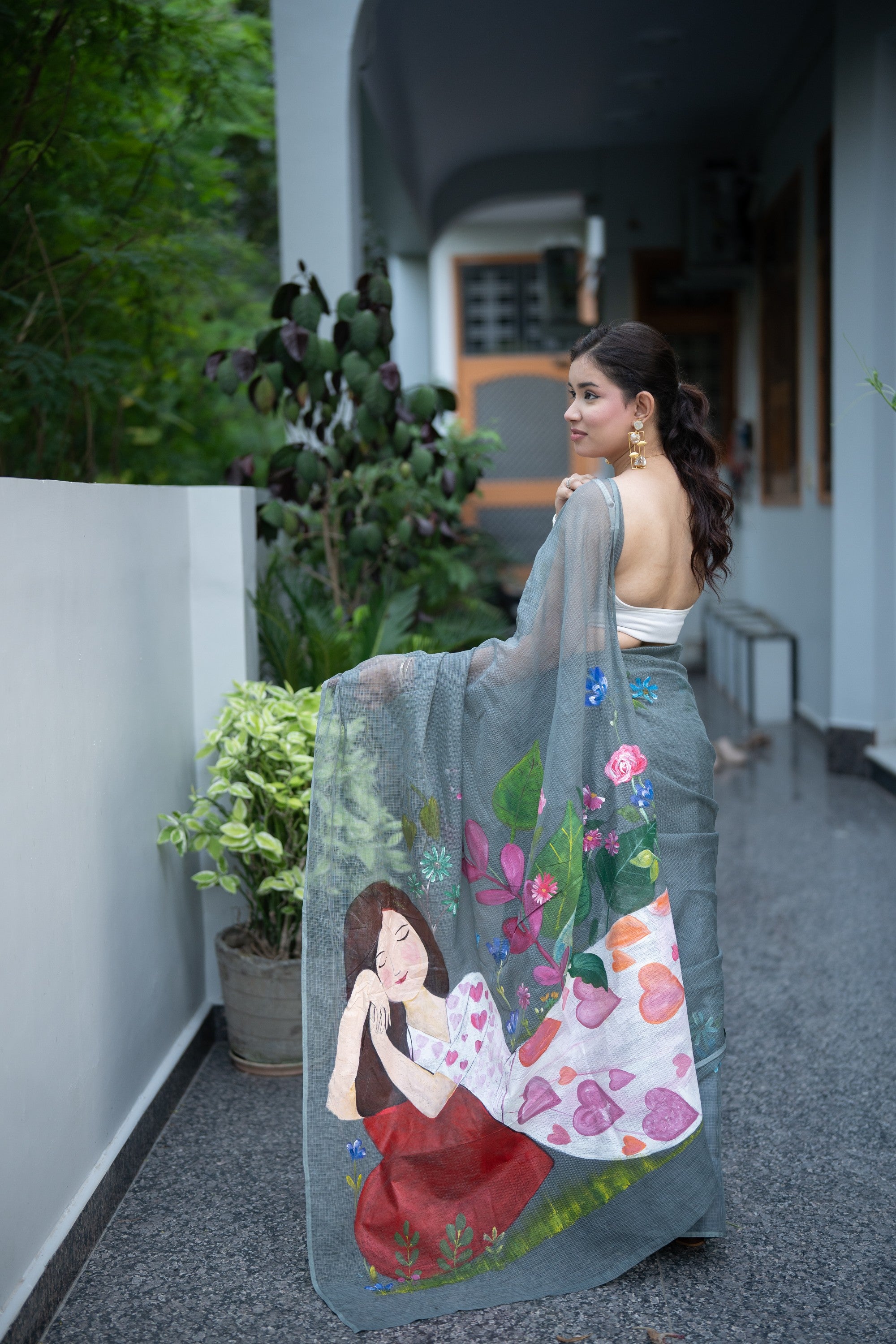 Whether you’re attending festive occasions, casual gatherings, or cultural events, this handpainted grey saree is sure to make a statement. The artistic design complements the versatility of the Kota Doria weave, making it a must-have for women who cherish unique, hand-crafted pieces.