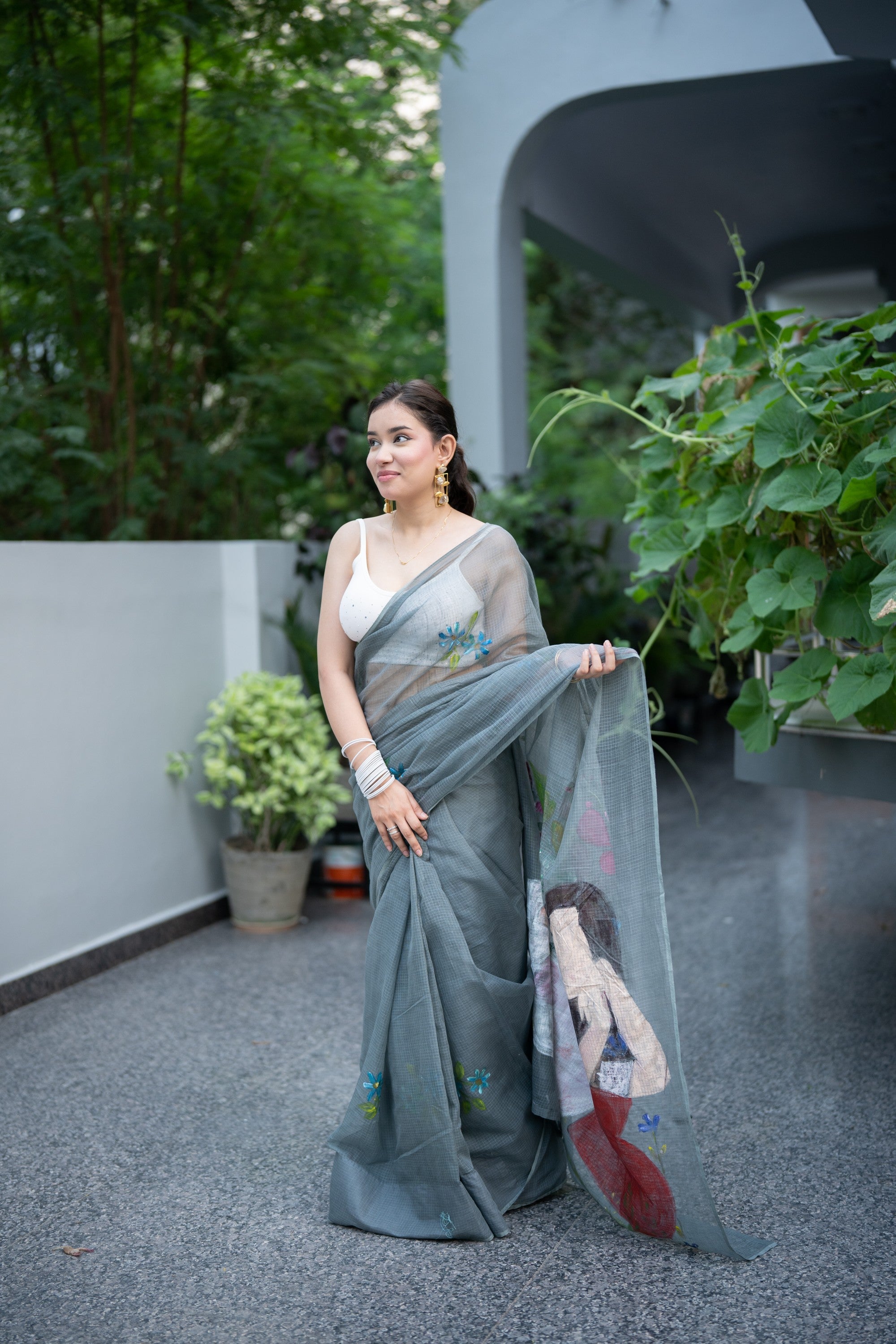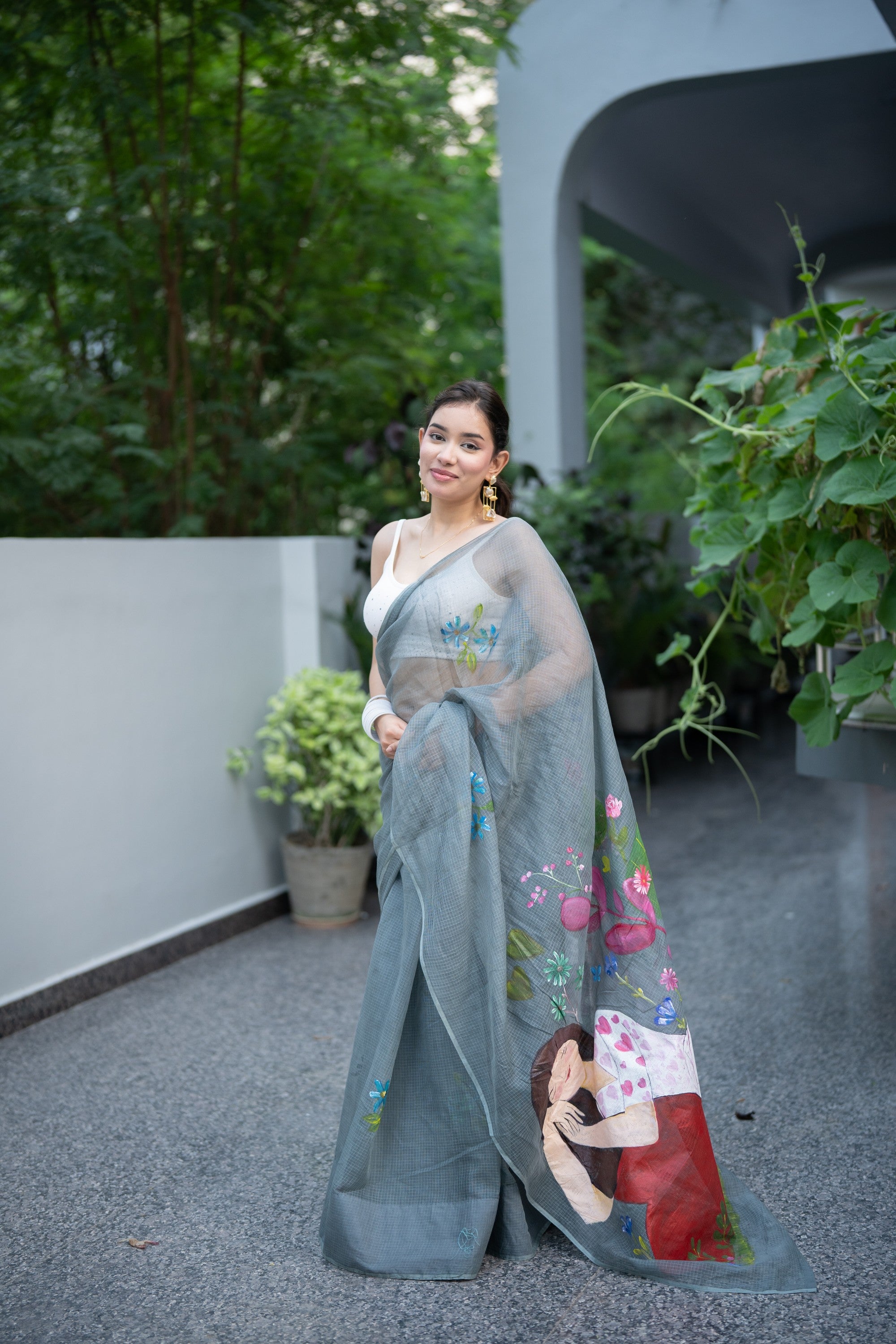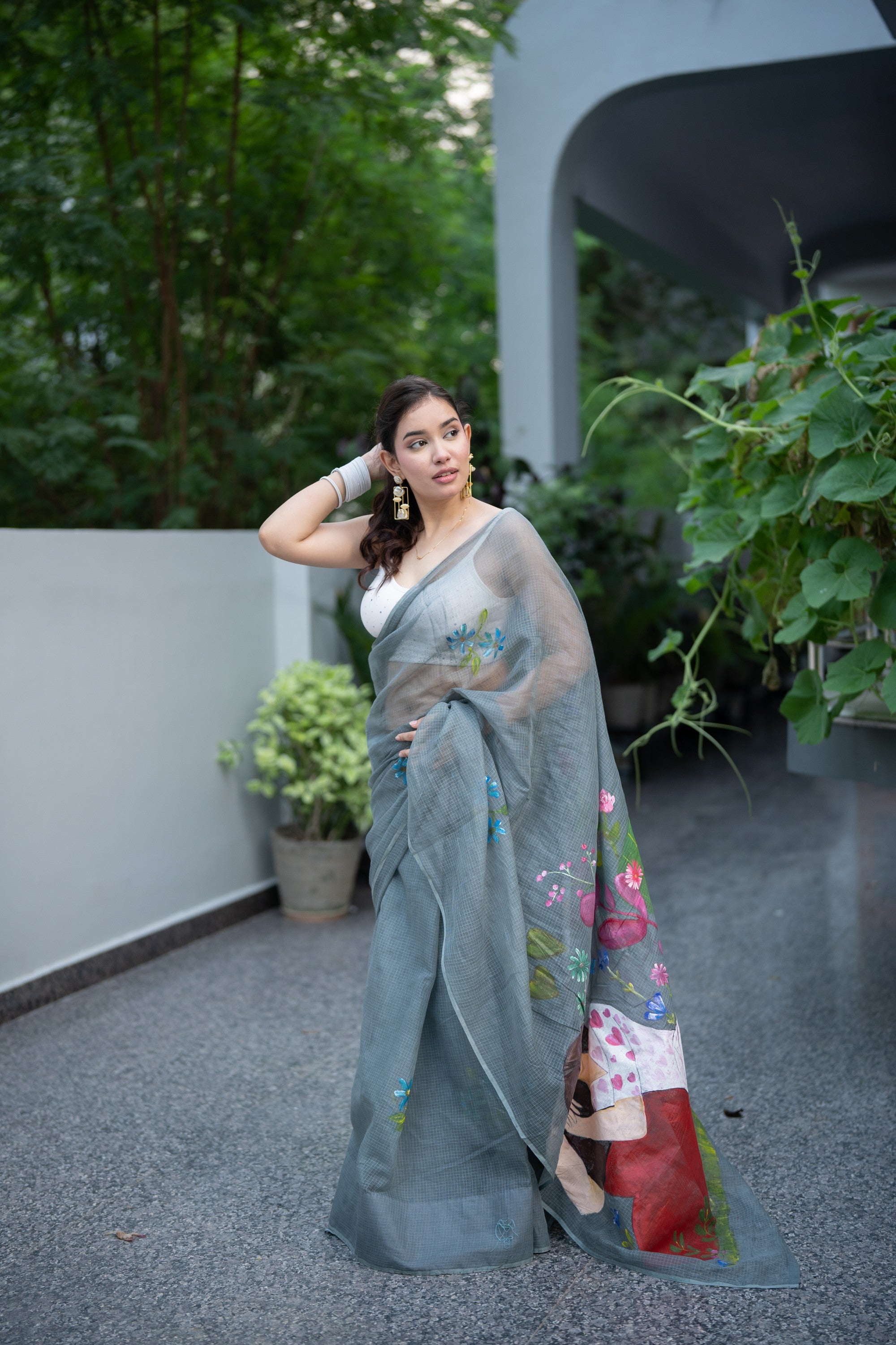 Pair it with a delicate blouse and minimal jewelry to let the saree's artistry take center stage. Add a potli bag or traditional clutch to complete the look.