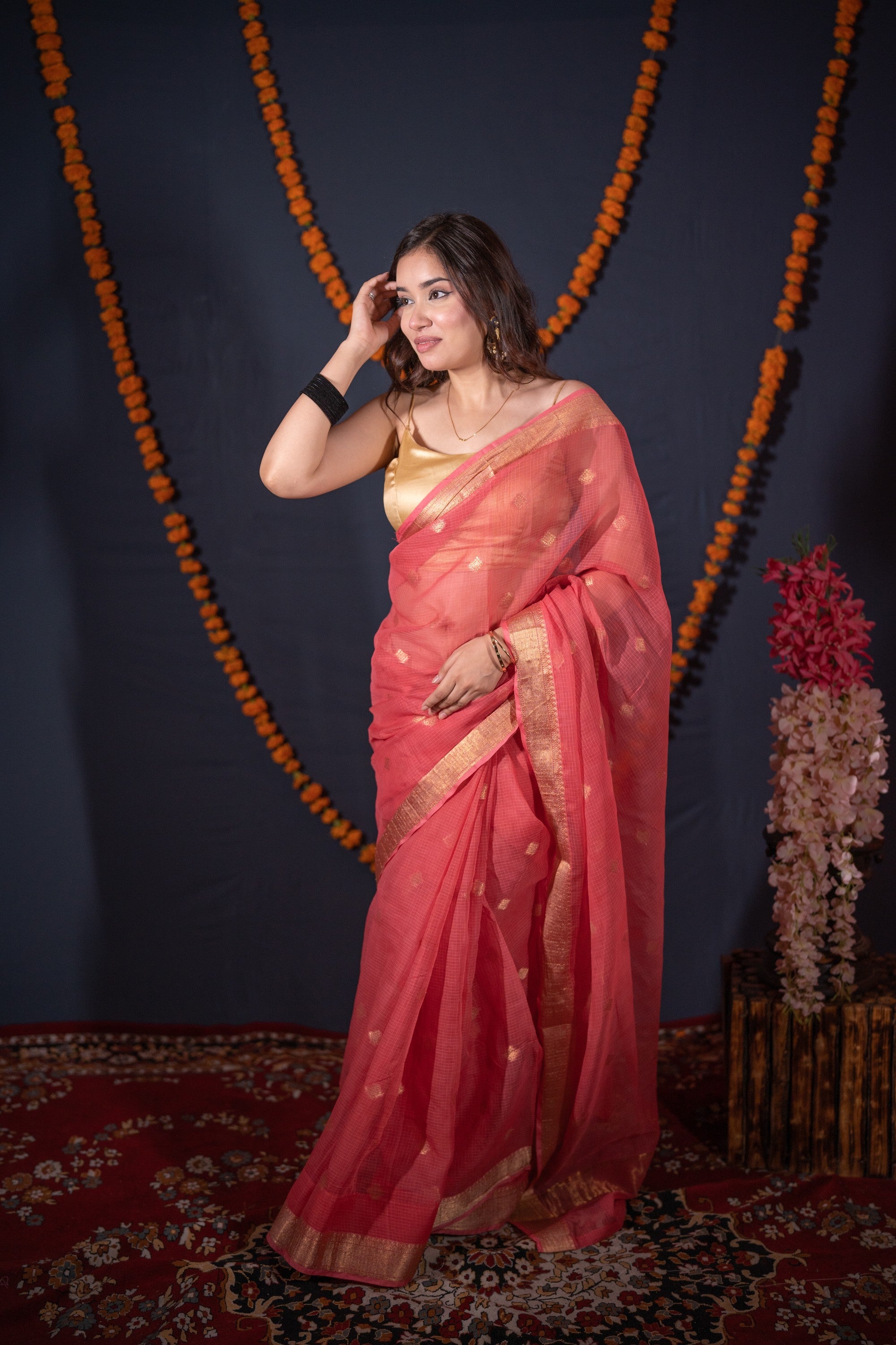 We recommend gentle hand washing or dry cleaning for linen sarees to maintain their quality and longevity.