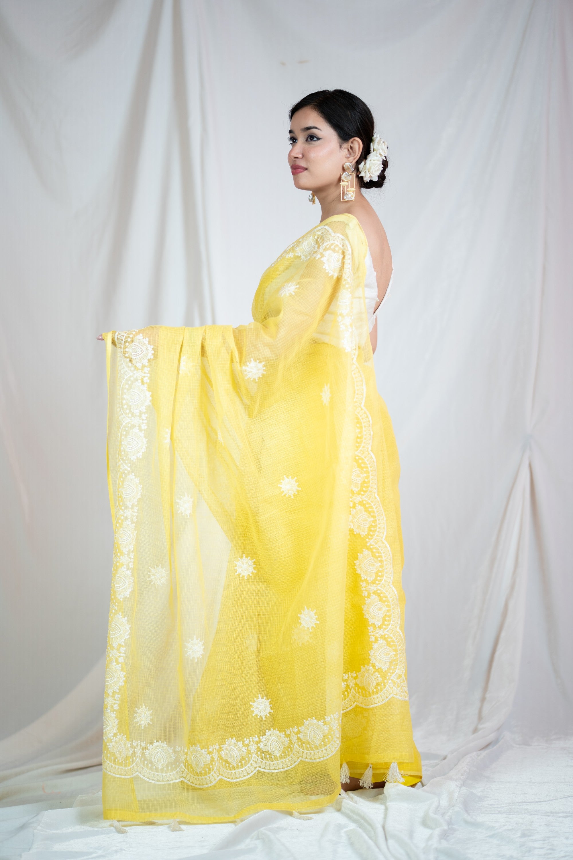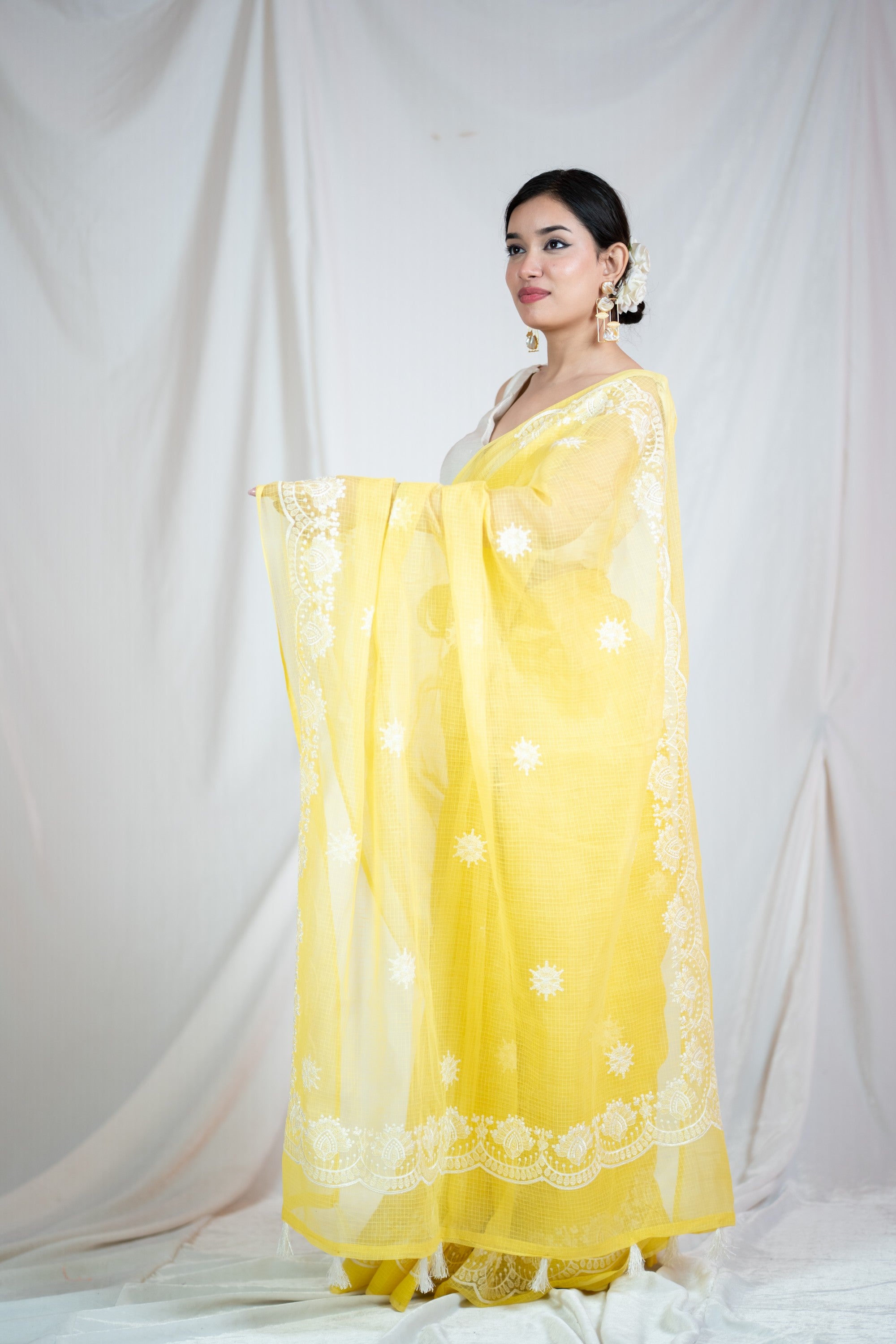Kota Doria is a traditional fabric from Rajasthan, known for its lightweight and translucent qualities, making it ideal for sarees.